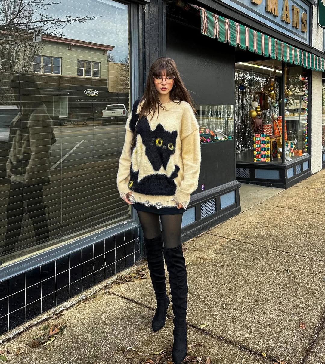 Zwoyren Knitted Teddy Bear Graphic Sweatshirt