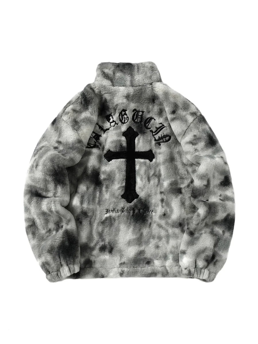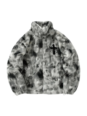 Heavy-Duty Faux Lambswool Tie-Dye Urban Jacket