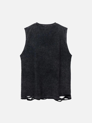 Mettalic Embellished Phantom Lettering Vintage Distressed Washed Tank Top