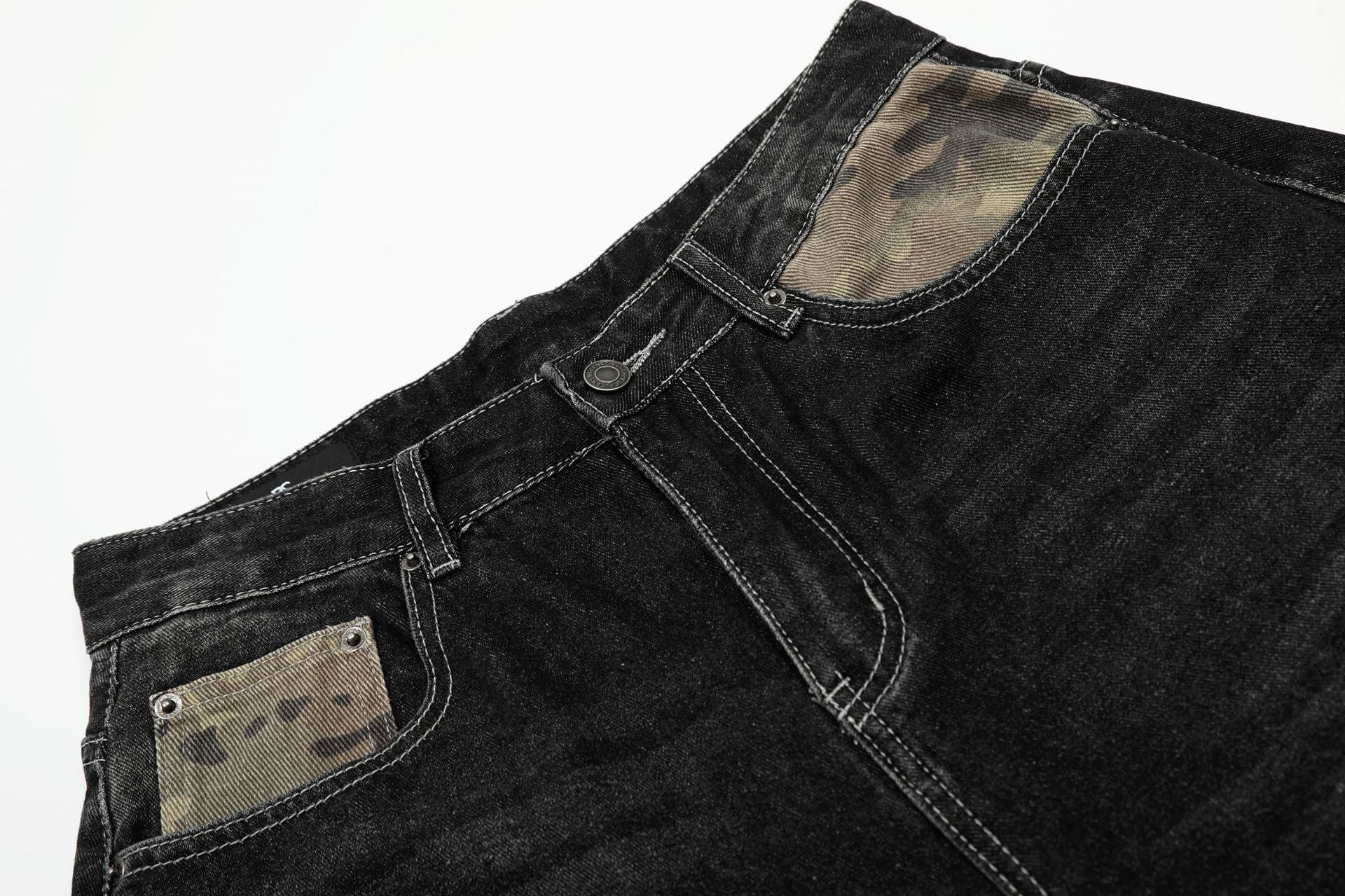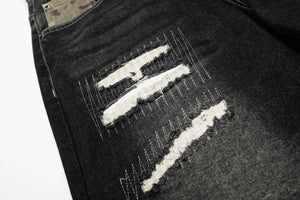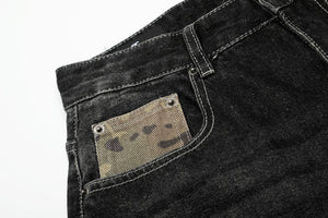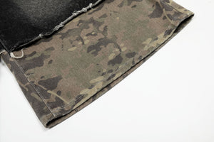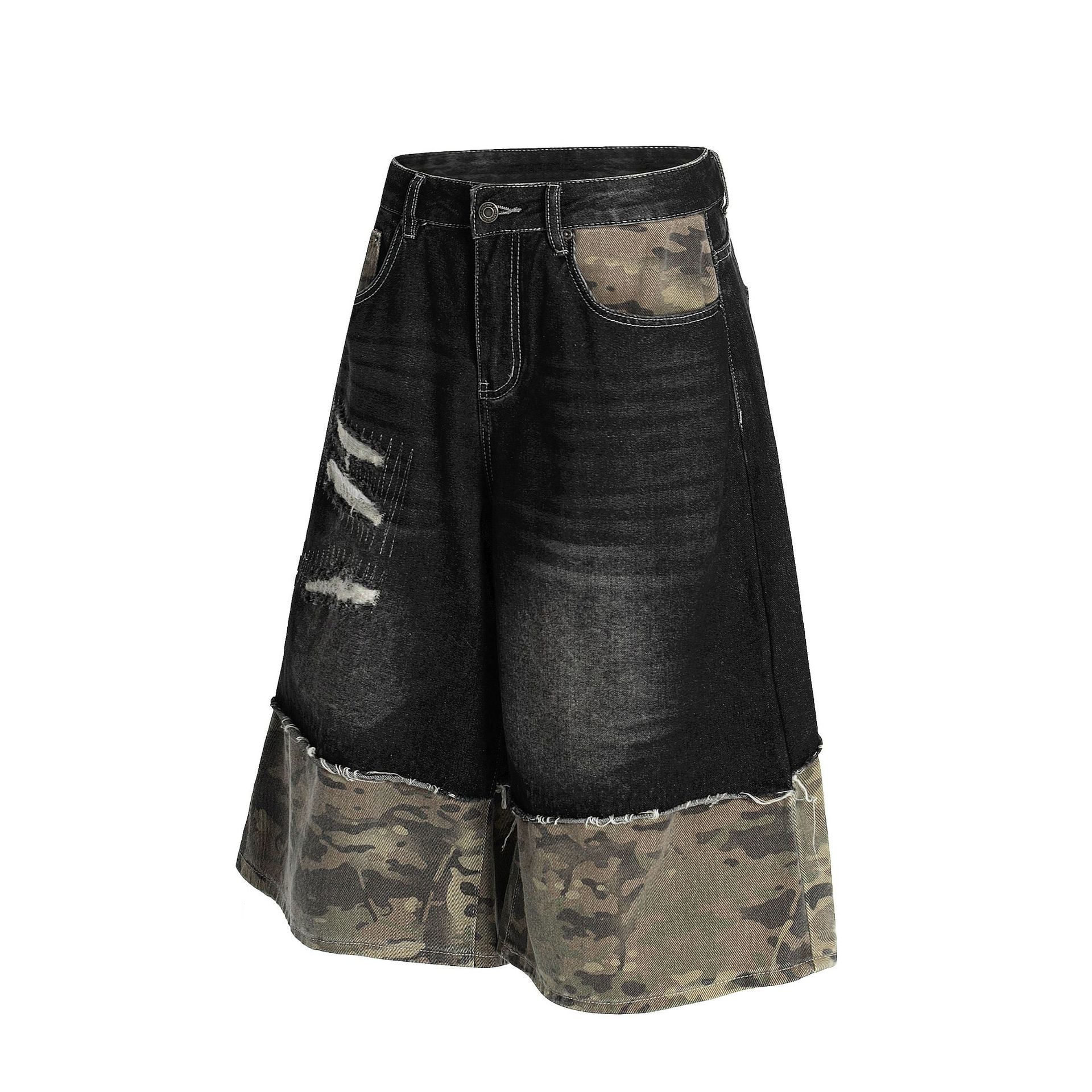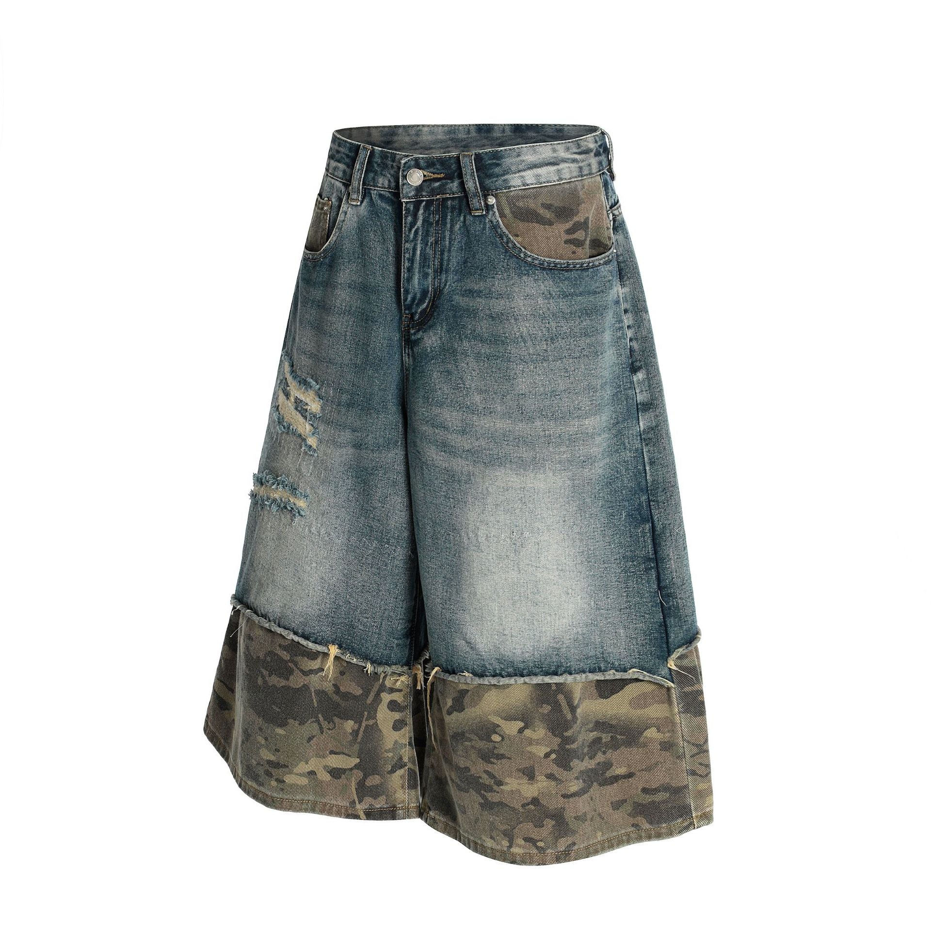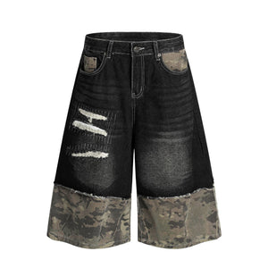 Zwoyren Distressed Camo Patchwork Denim Shorts