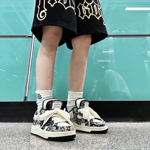 • Detail Features: Floral Embroidery, Chunky Sole, Lace-Up Closure, Ruffled Edges