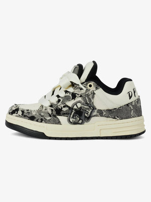 • Design Elements: Floral Embroidery, Ruffled Edges, Chunky Sole