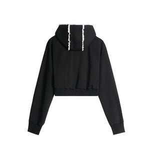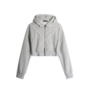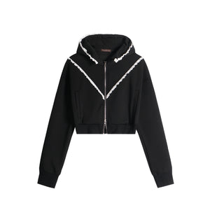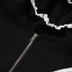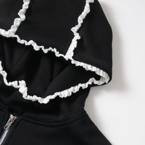 Zwoyren Ruffle Trim Cropped Zip Up Hoodie