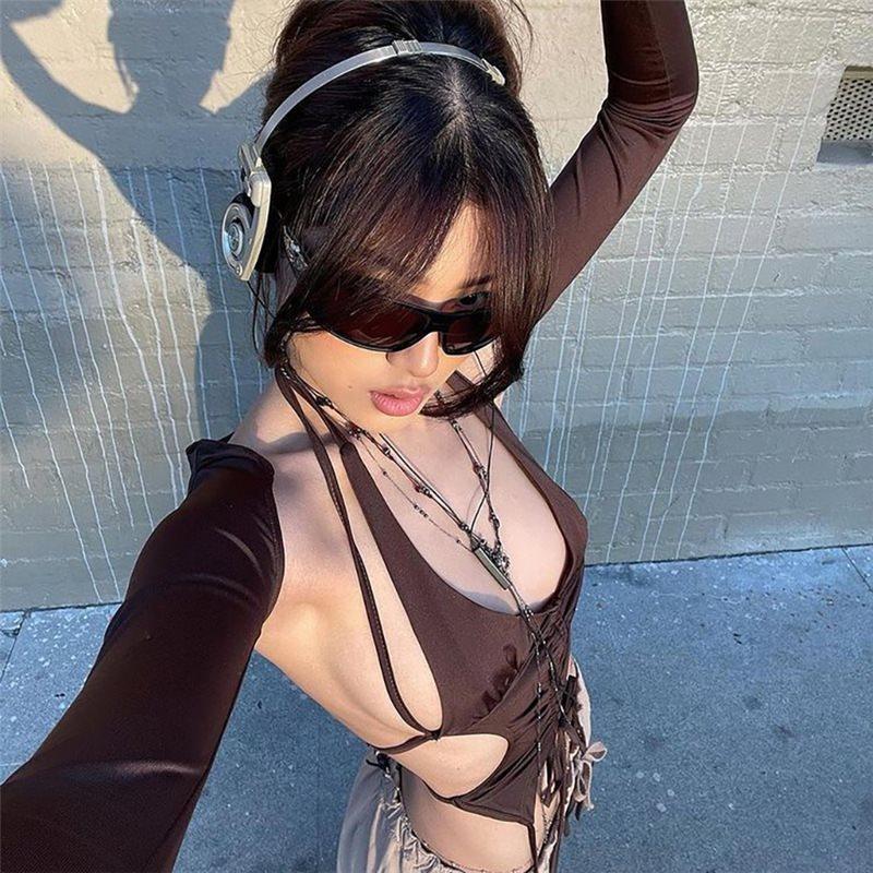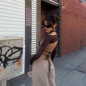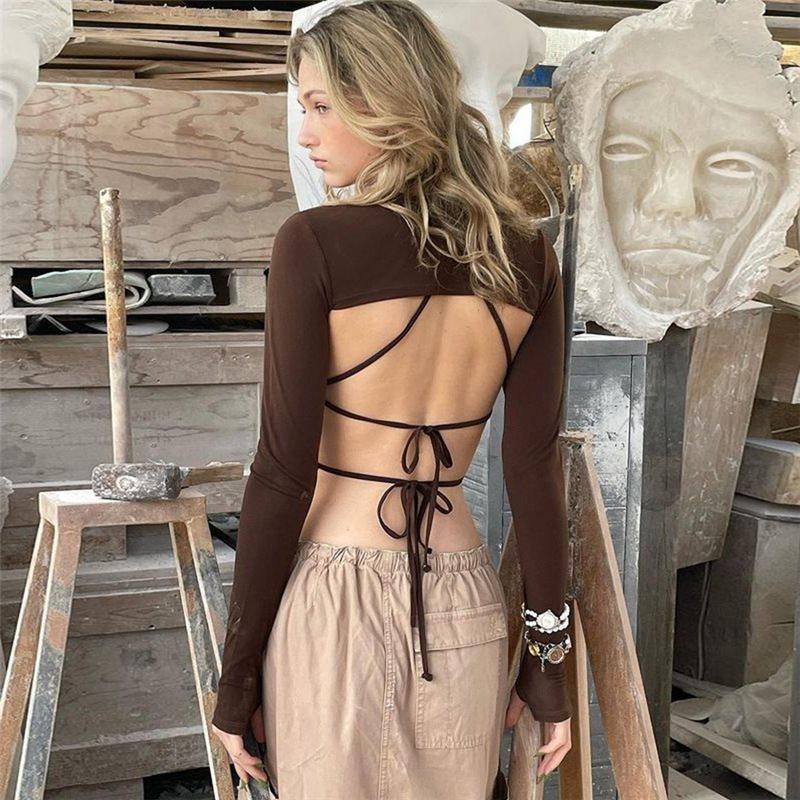 Neck Backless Long Sleeves Cropped