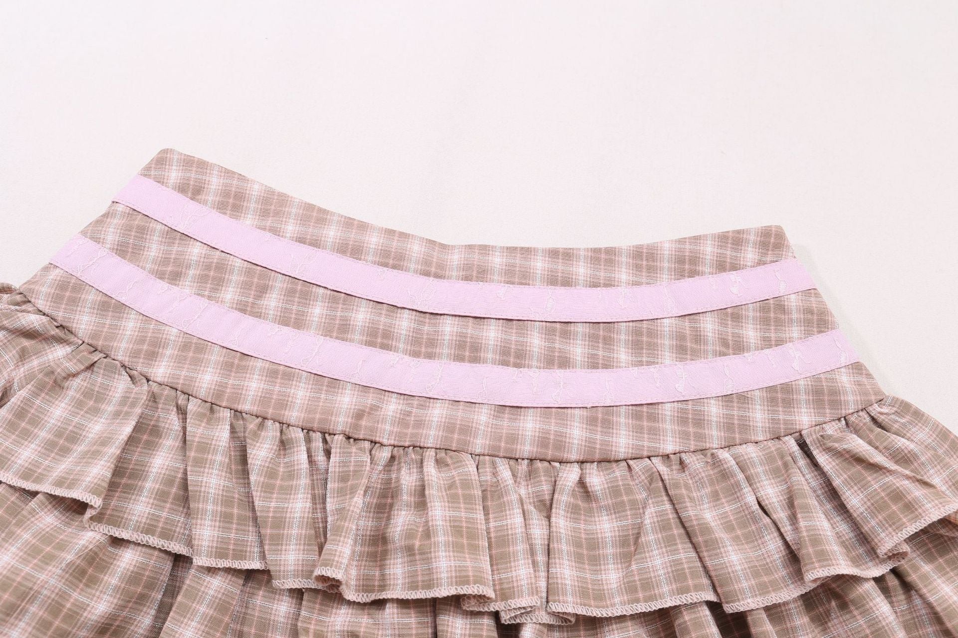 Zwoyren Plaid Off-Shoulder Top & Ruffled Mini Skirt Set