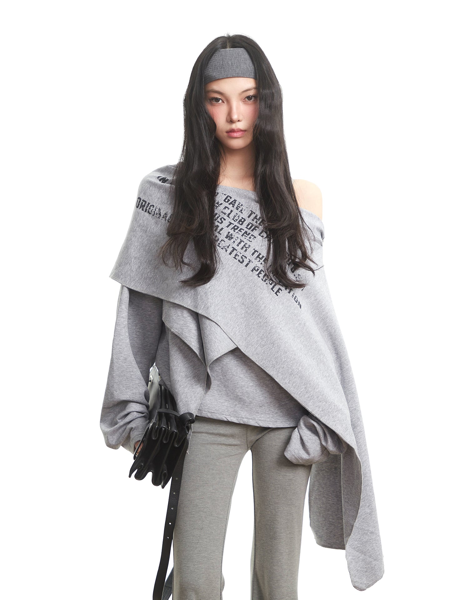 Zwoyren Asymmetric Off-Shoulder Sweatshirt