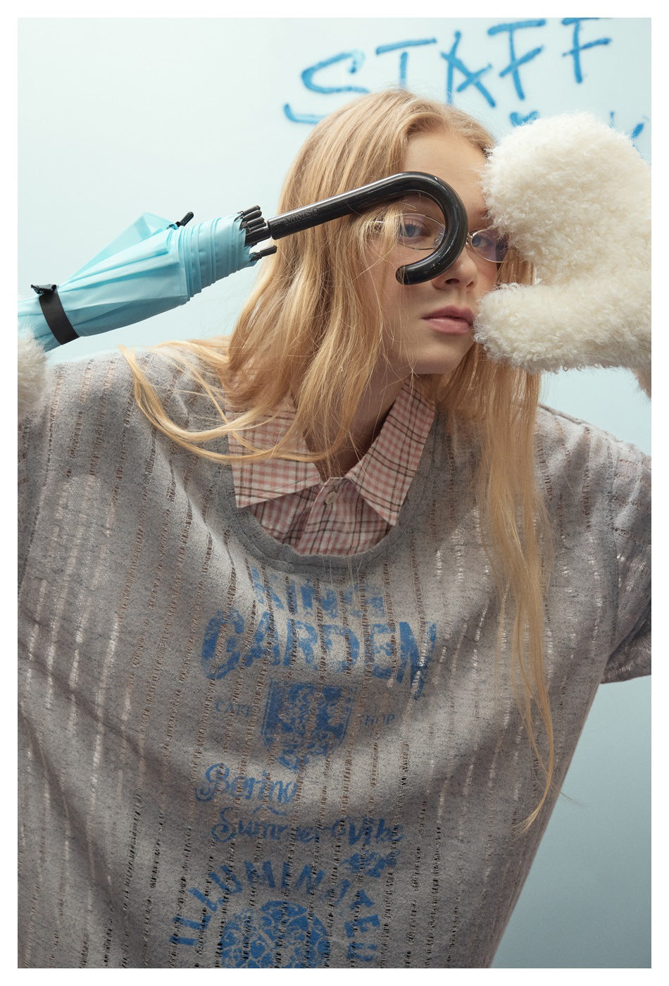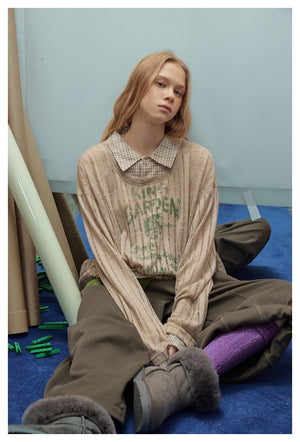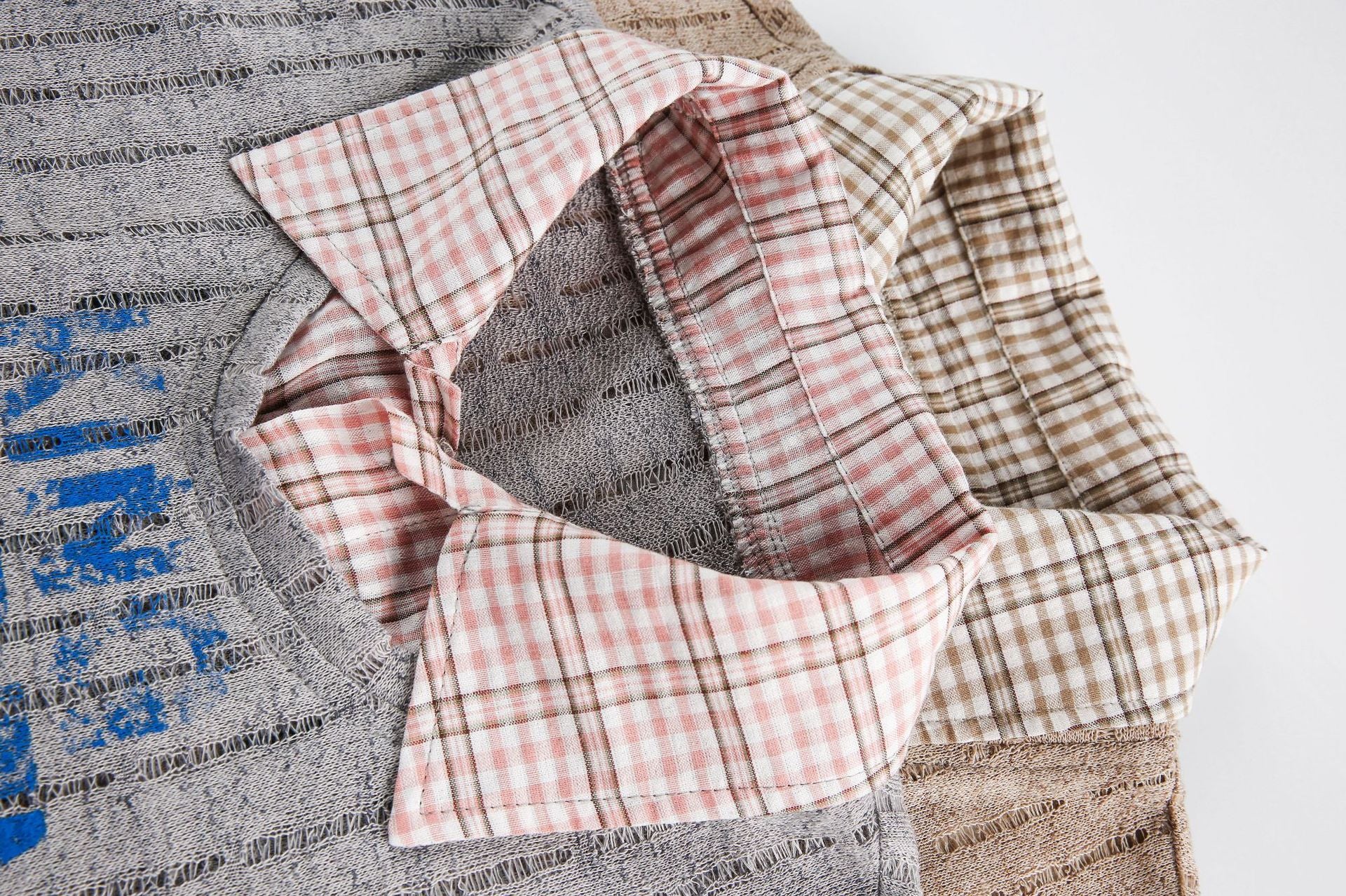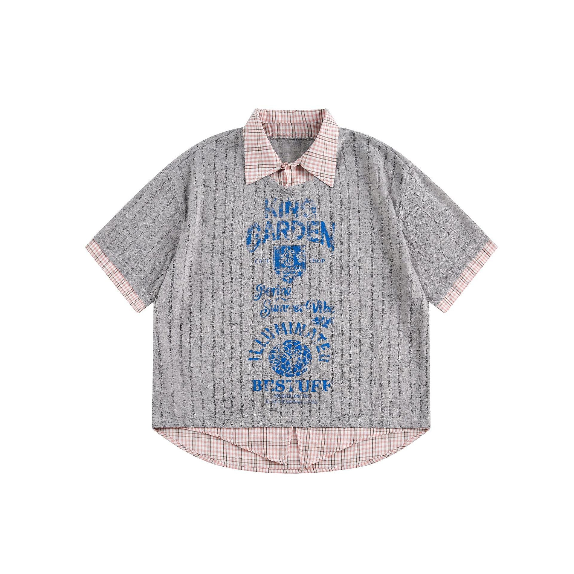 Zwoyren Vintage Faux-Layered Plaid Tee