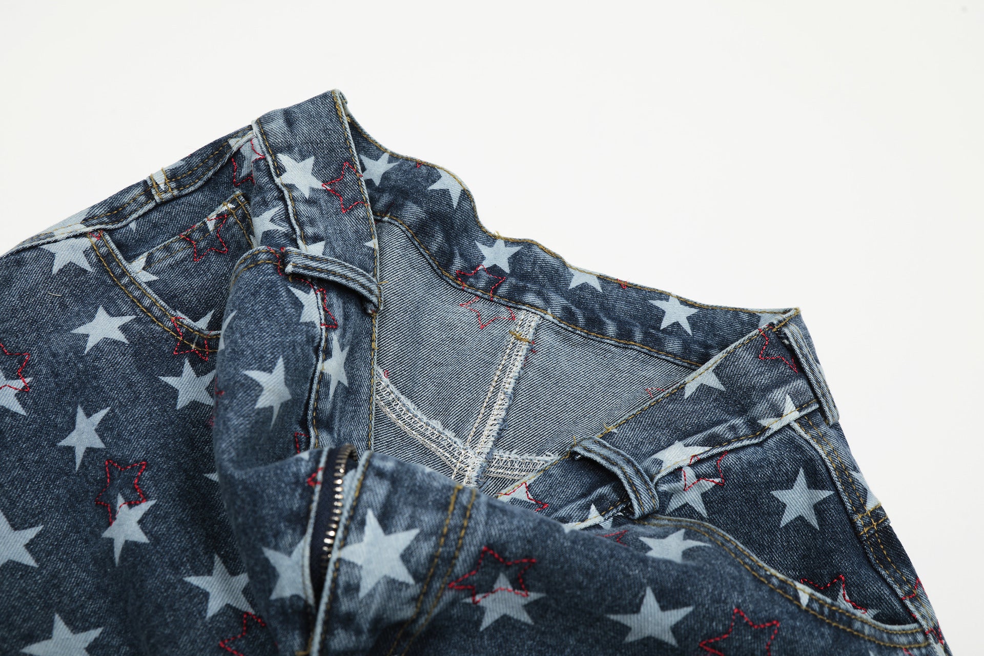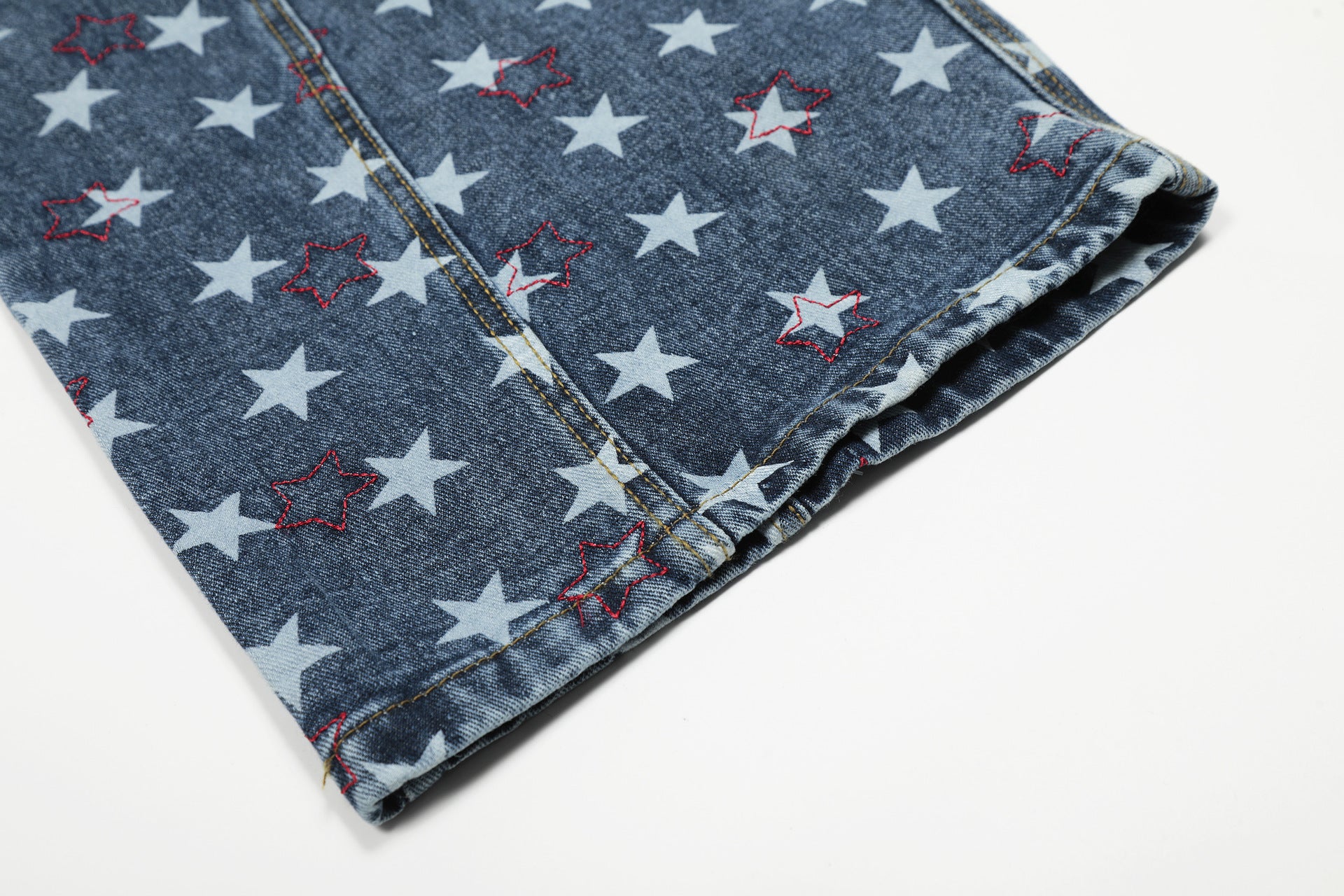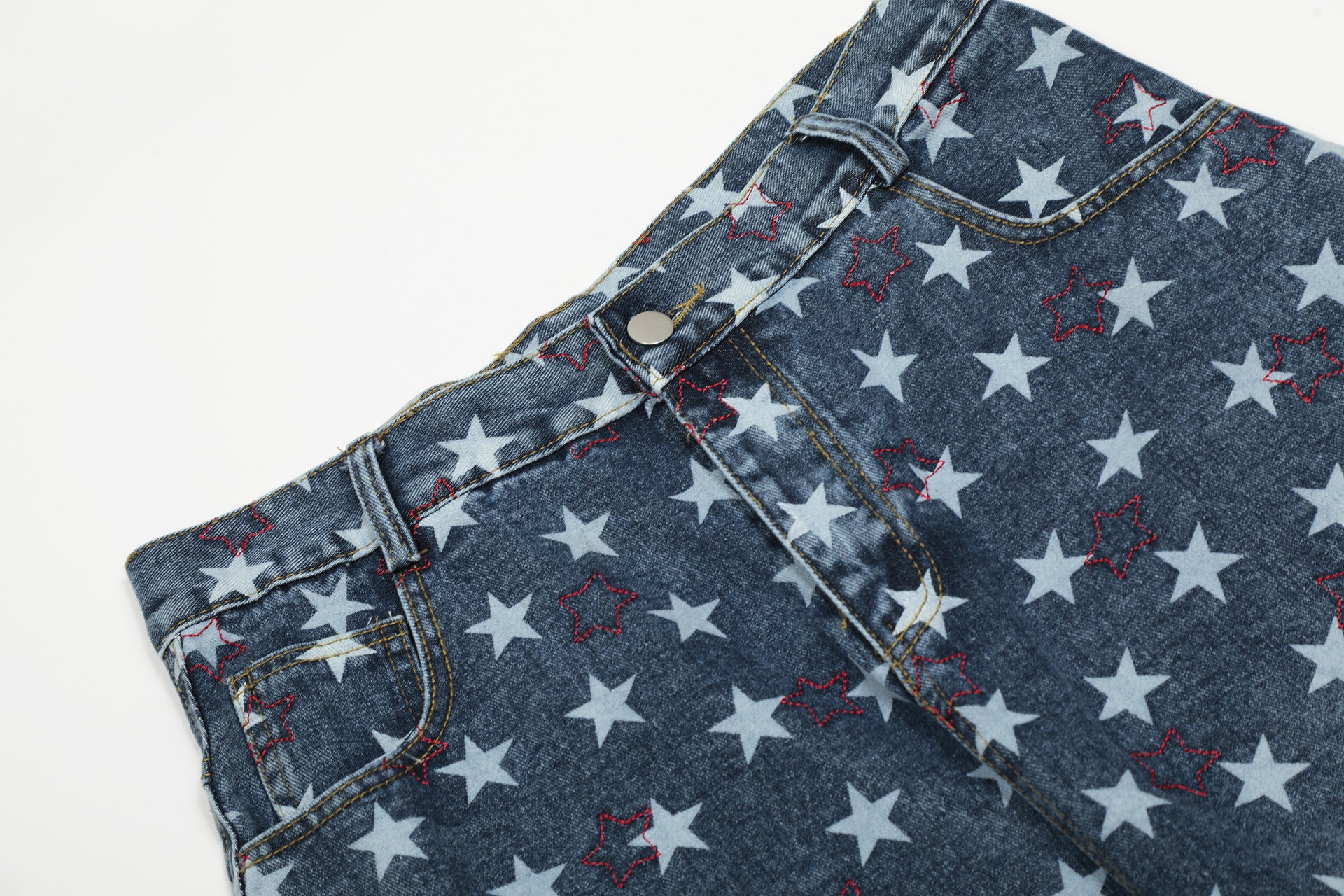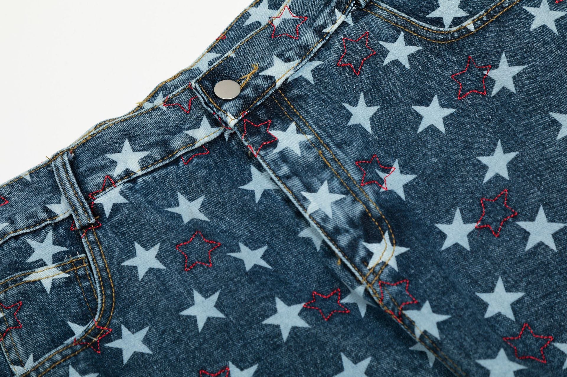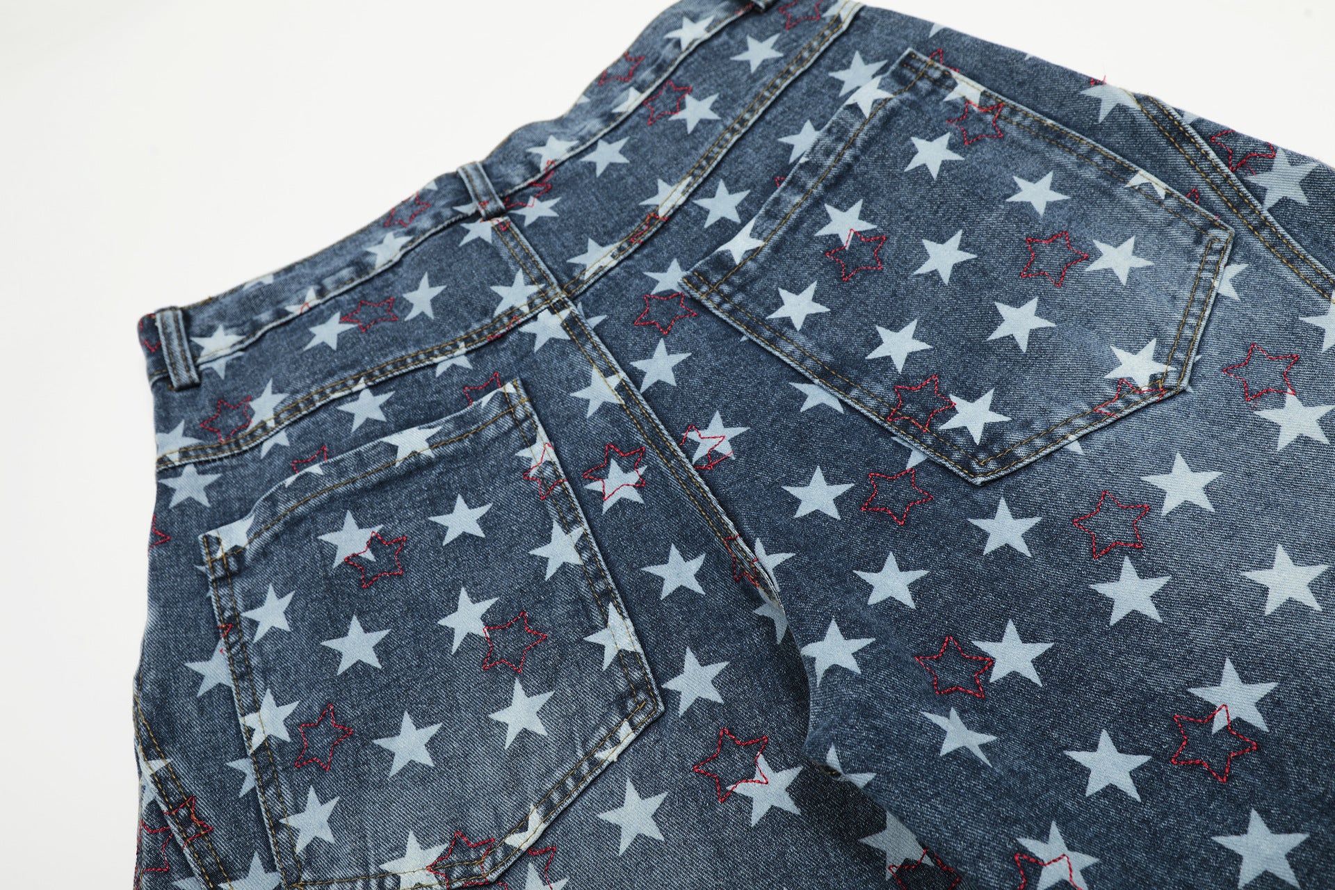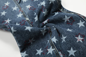 Design Elements: All-over star print, side pockets, relaxed fit