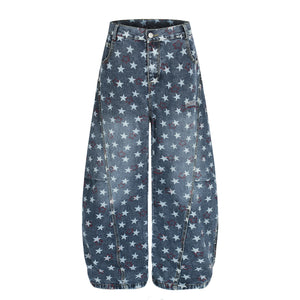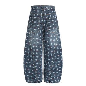 Zwoyren Vintage Star Embroidered Barrel Jeans