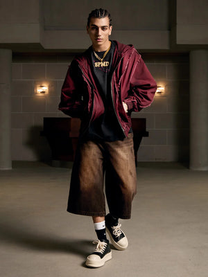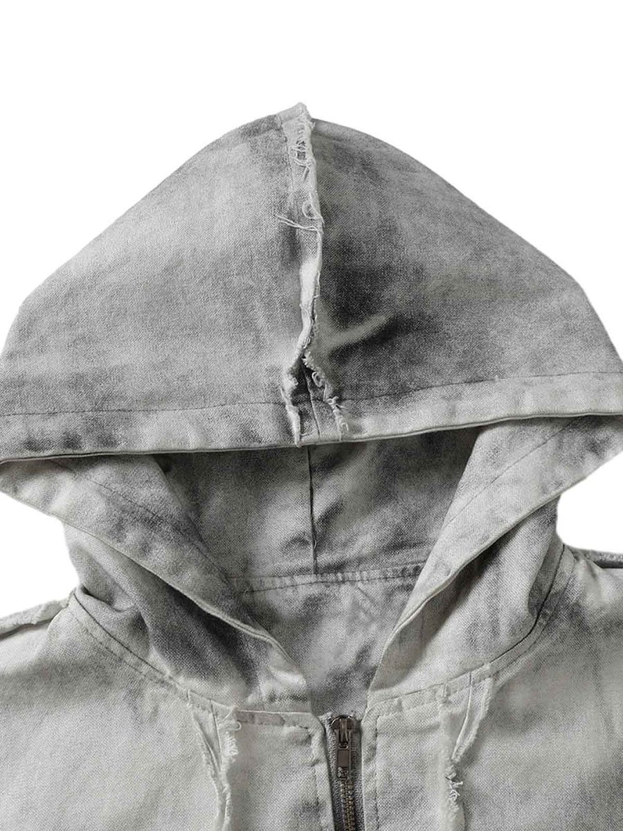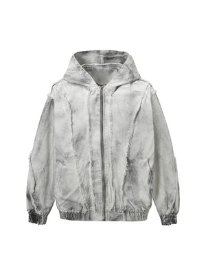 Zwoyren Washed Distressed Fur Hooded Jacket