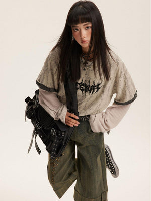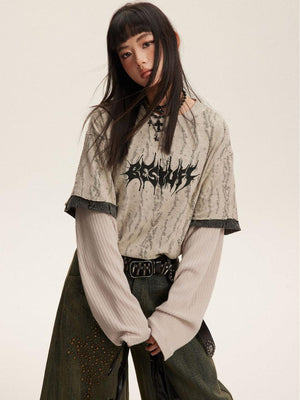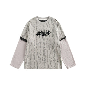 Fake Two-piece Distressed Textured Woolen T-shirt