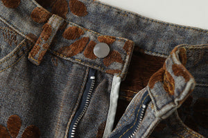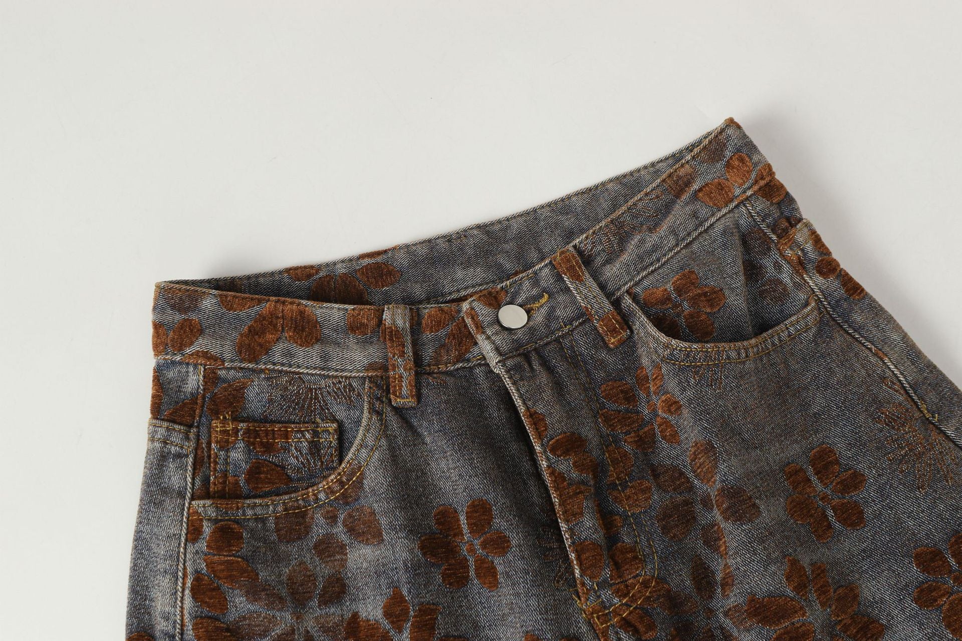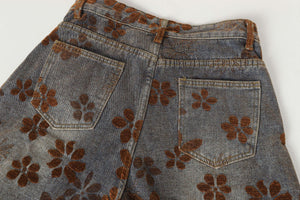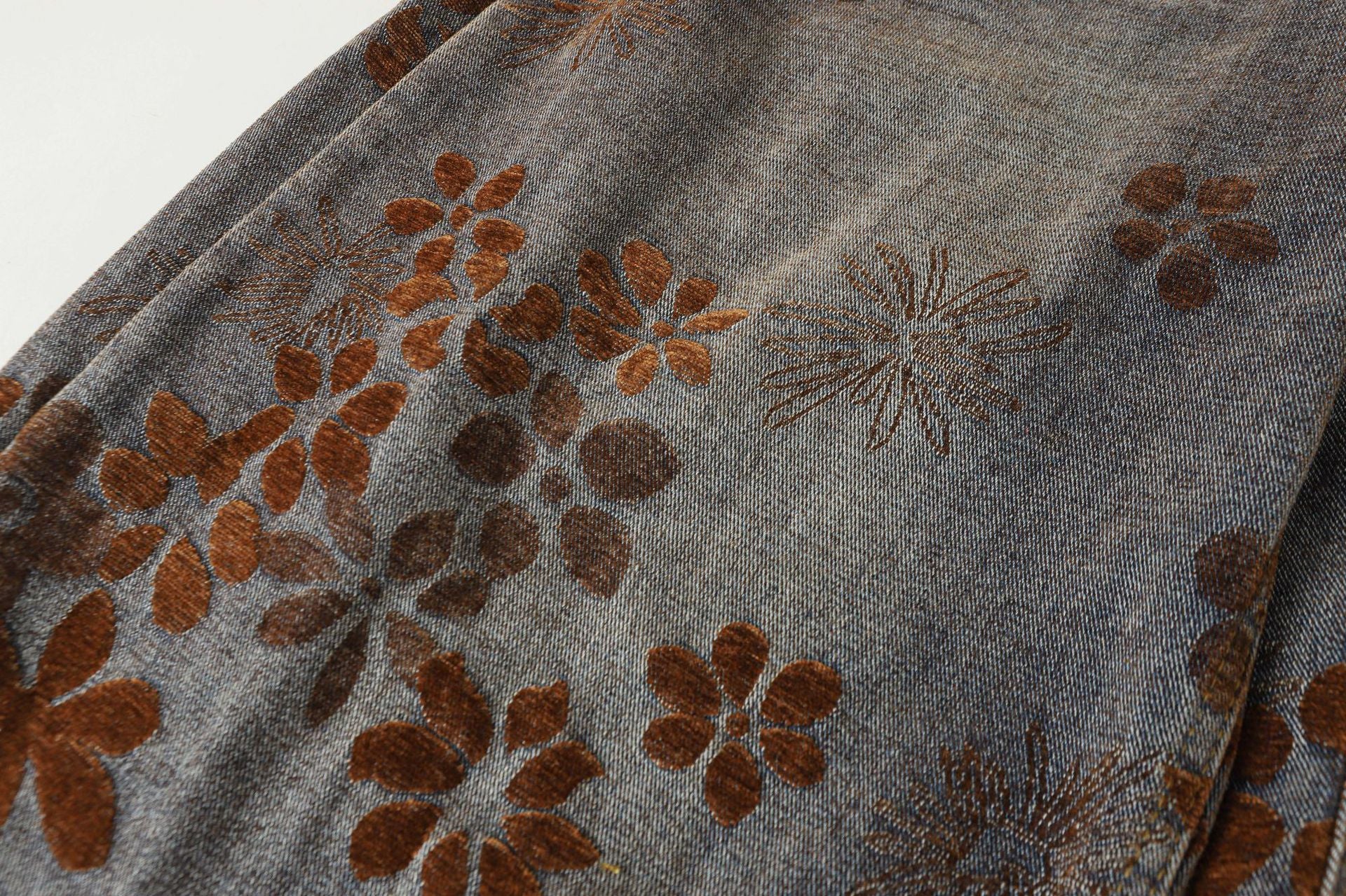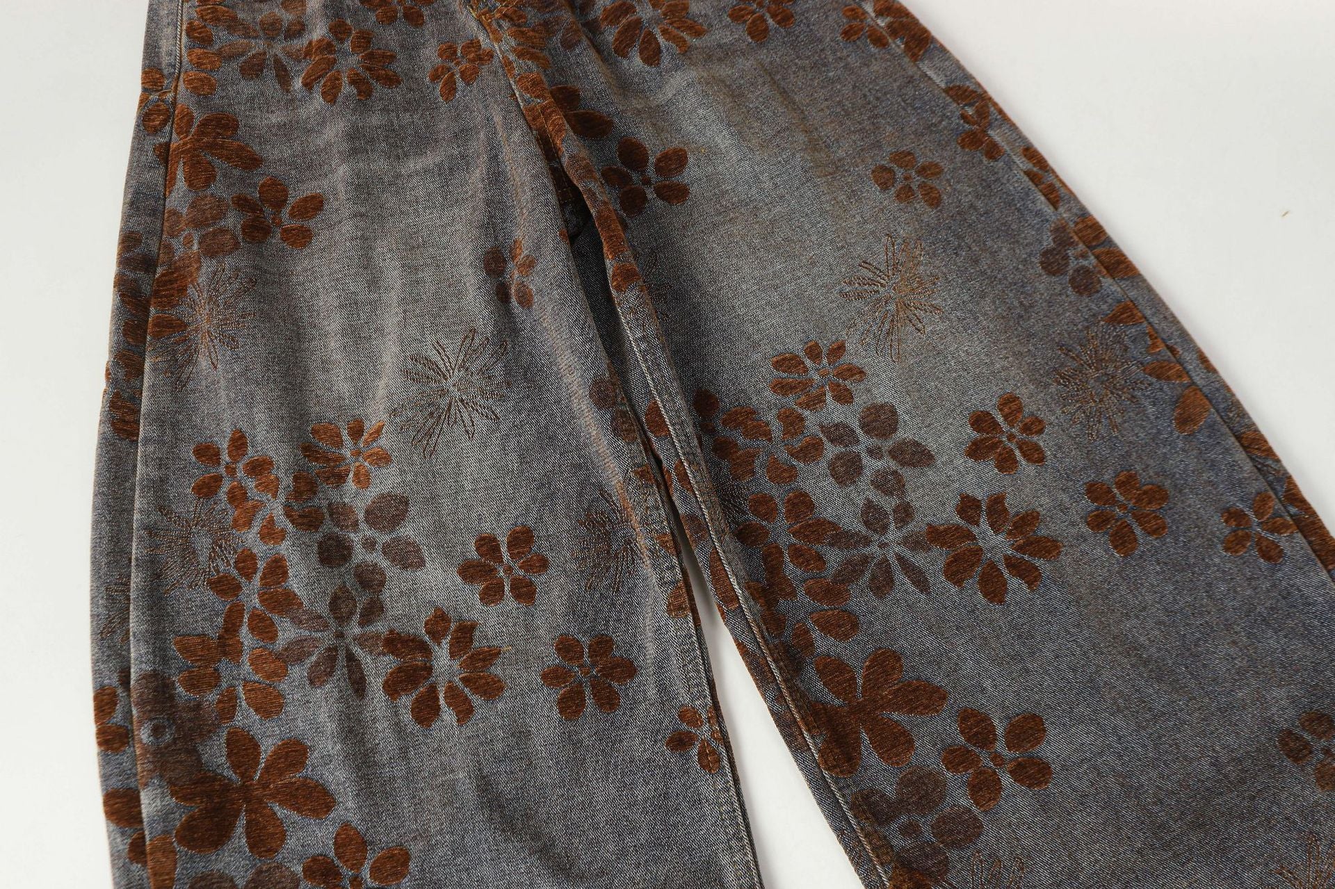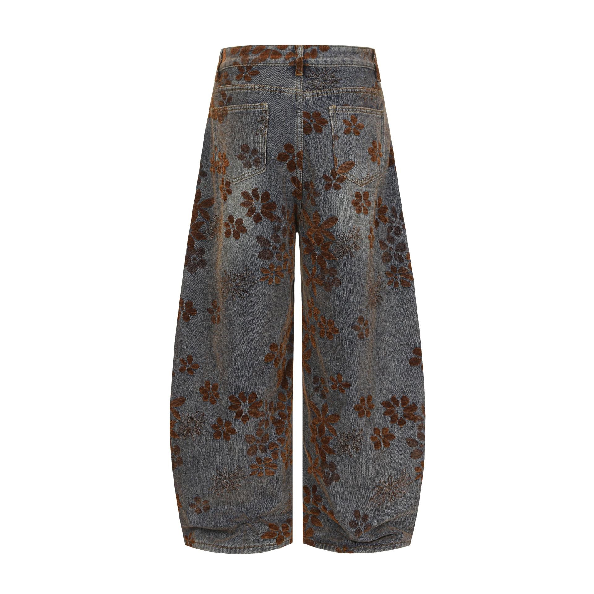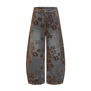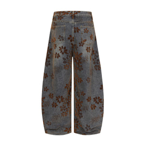 Zwoyren Floral Flocked Wide-Leg Baggy Jeans