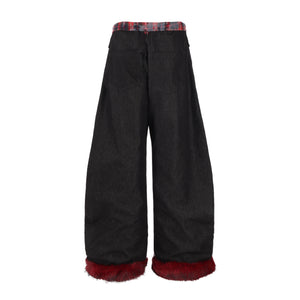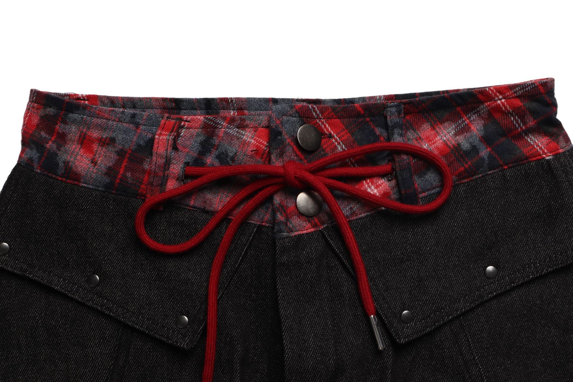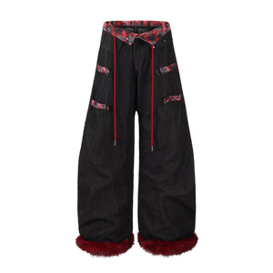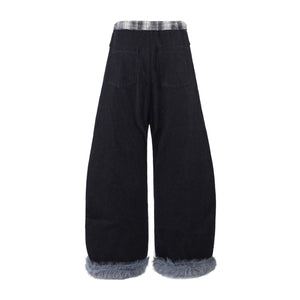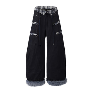 Zwoyren Plaid Waist Wide-Leg Denim Pants