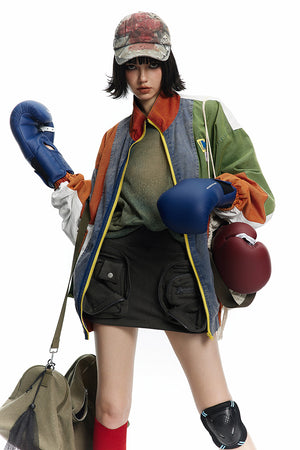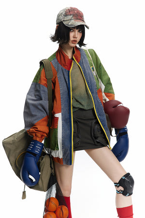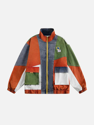 Rock your fashion game with the Zwoyren Multi Color Patchwork Jacket. Stand out with its unique irregular color blocking and patchwork design. Embrace your individuality and style with this bold piece!