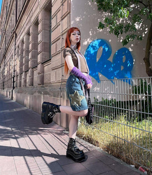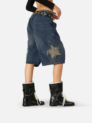 Get ready to blast off in these Zwoyren Star Tassel Patch Gradient Denim Shorts! Featuring a constellation of stars stitched onto distressed denim, these shorts will have you feeling out-of-this-world cool. Perfect for adding a touch of cosmic flair to any summer look.