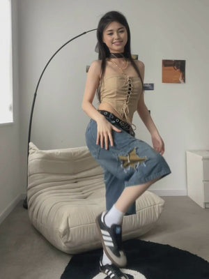 Zwoyren Star Tassel Patch Gradient Jorts