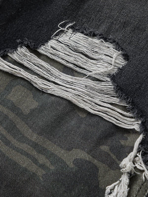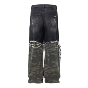 The unique camouflage design adds a stylish edge, while the distressed details create a rugged, worn-in look. The two-layer construction ensures durability and comfort, making these jeans a must-have for any fashion-forward individual.