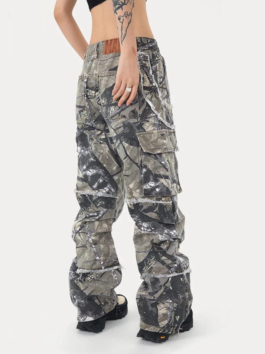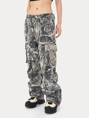 Jungle Camouflage Leaf Loose Fit Straight Leg Pants