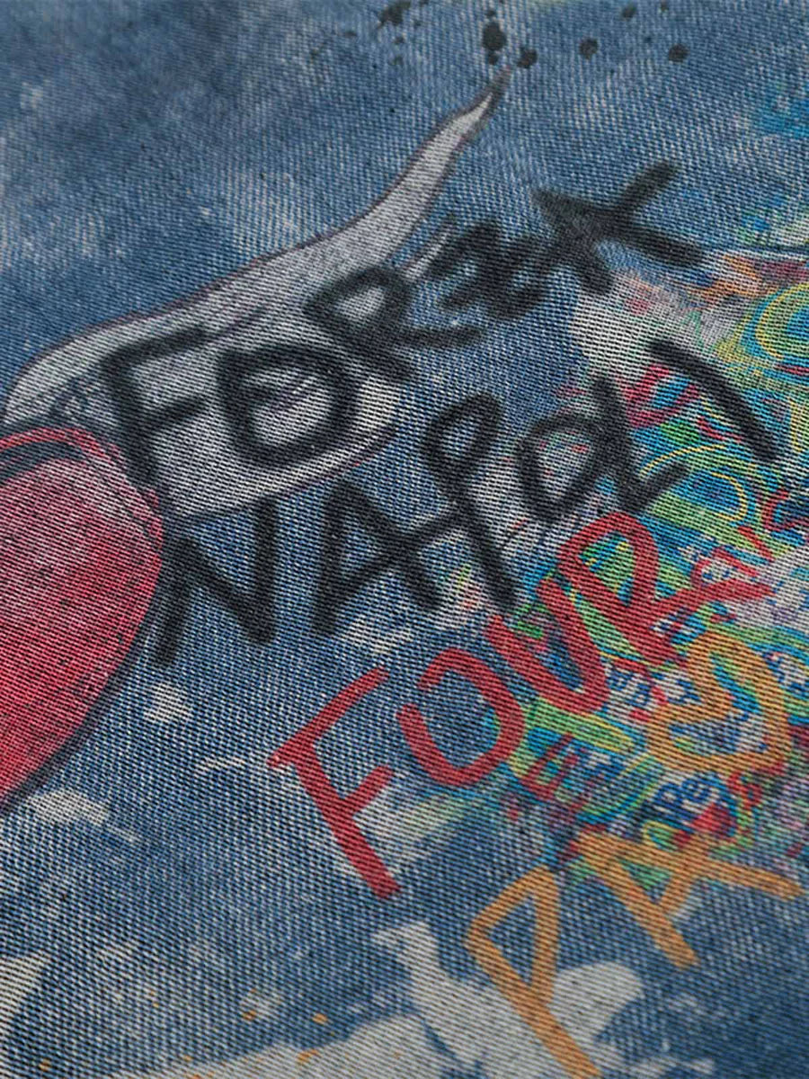 Tie-Dye Denim Graffiti Polo T-Shirt