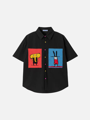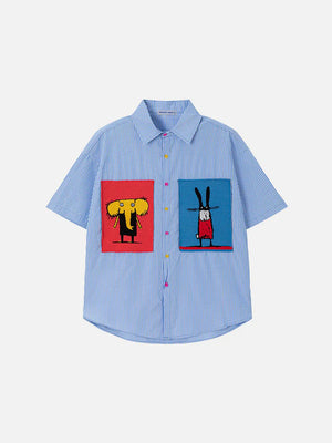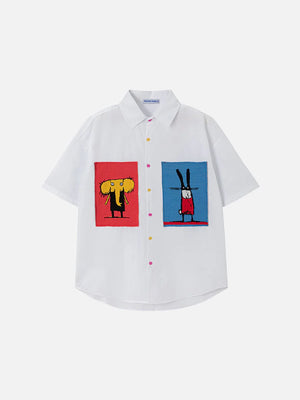 Zwoyren Cartoon Embroidery Short Sleeve Shirt