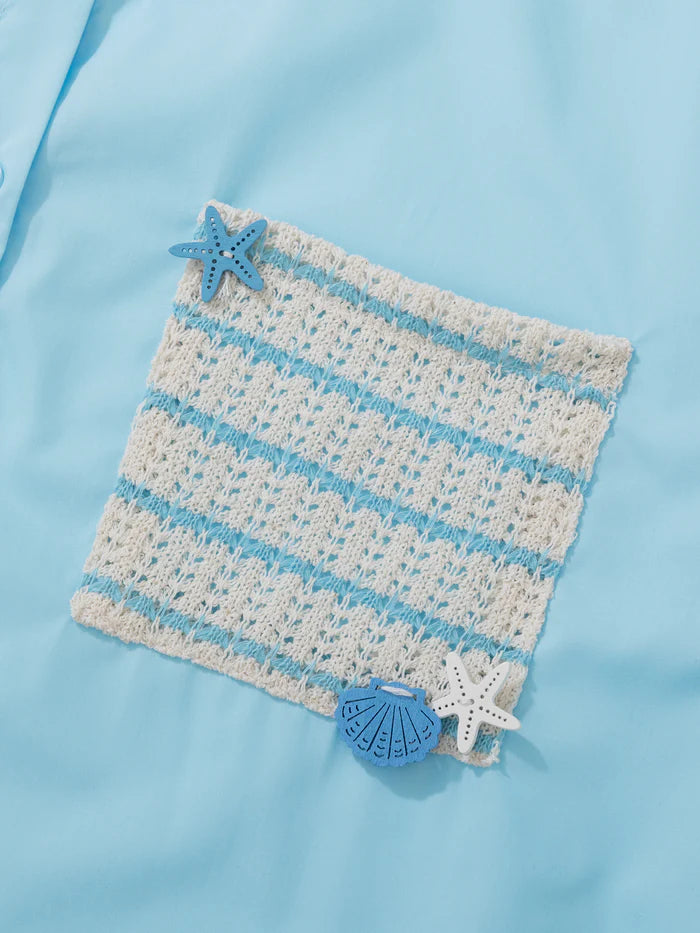Keep it clean yet unique with this sky blue long-sleeved shirt. The striped pocket and delicate starfish charm add just the right amount of personality. A versatile staple for layering or wearing solo.
