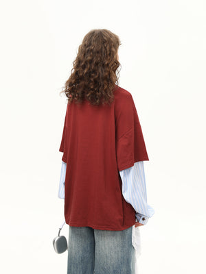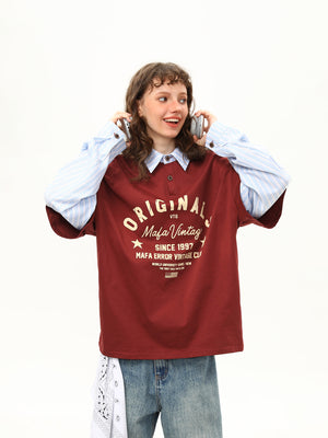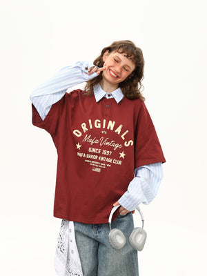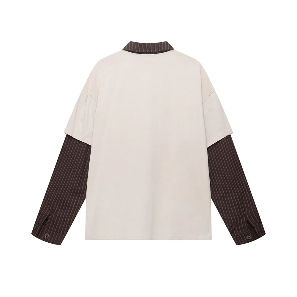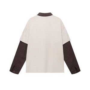 Zwoyren Pinstripe Faux-Layered Polo Long Sleeve Tee