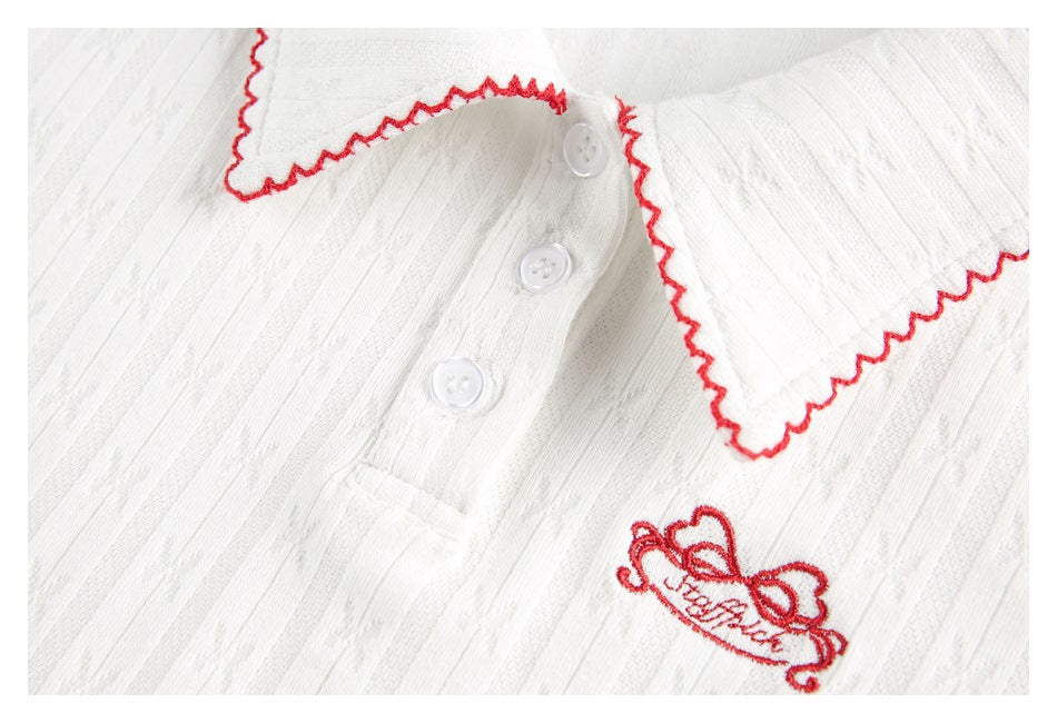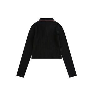 Zwoyren Ribbed Cropped Polo Top