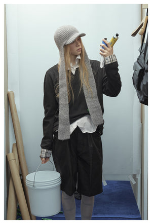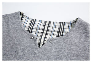Zwoyren Plaid-Lined V-Neck Sweatshirt