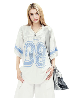 Zwoyren Retro Hollow Digital Stripe Print Jersey T-Shirt