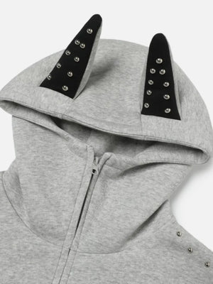 Zwoyren Rivet Horn Zip-Up Hoodie
