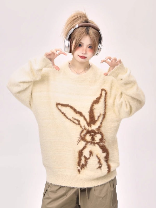 Zwoyren Cartoon Rabbit Jacquard Sweater