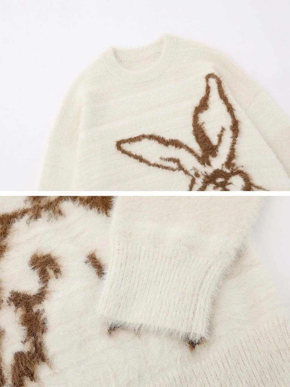 Stay cozy and playful in this delightful sweater adorned with a simple and cute bunny🐰. Its fluffy and comfortable feel ensures you keep your charm even in the chilly winter. ❄️