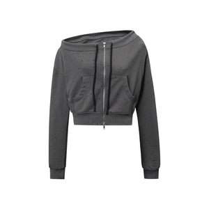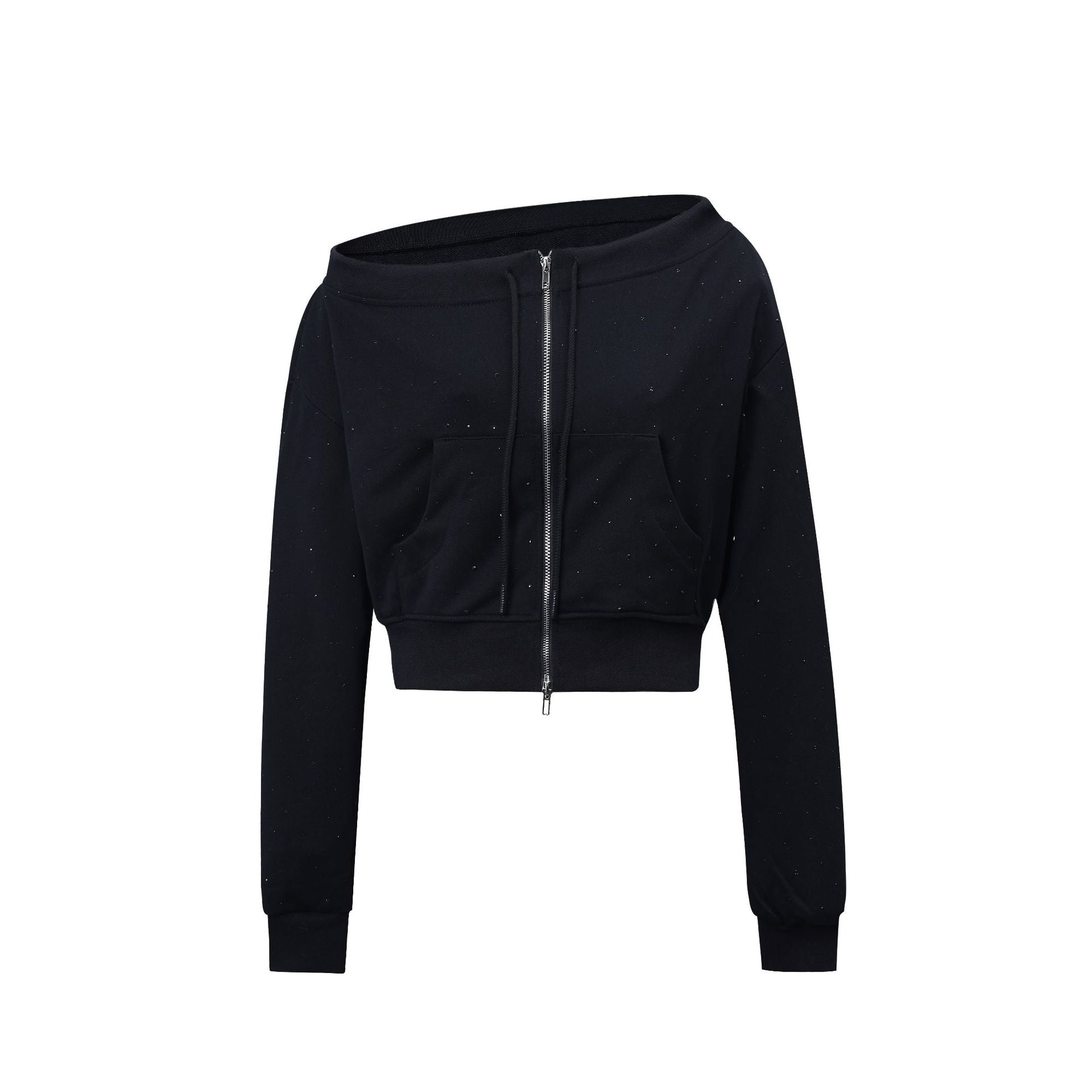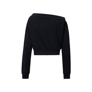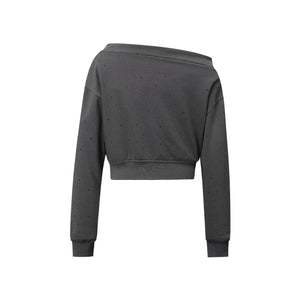 Zwoyren Hotfix Rhinestones Off-The-Shoulder Sweatshirt