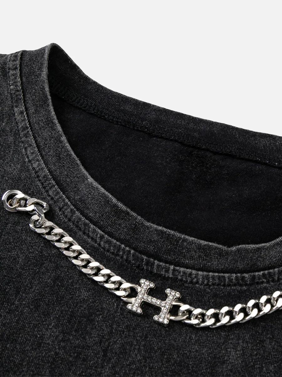 Mettalic Embellished Phantom Lettering Vintage Distressed Washed Tank Top