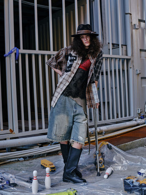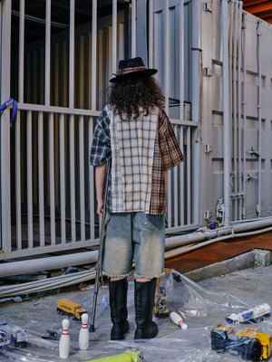 Zwoyren Patchwork Plaid Short-Sleeve Shirt