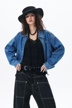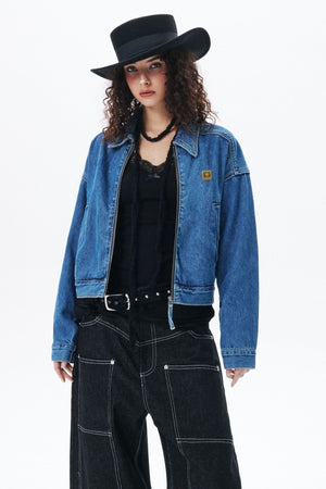 Zwoyren Retro Clean Fit Short Wide Denim Jacket