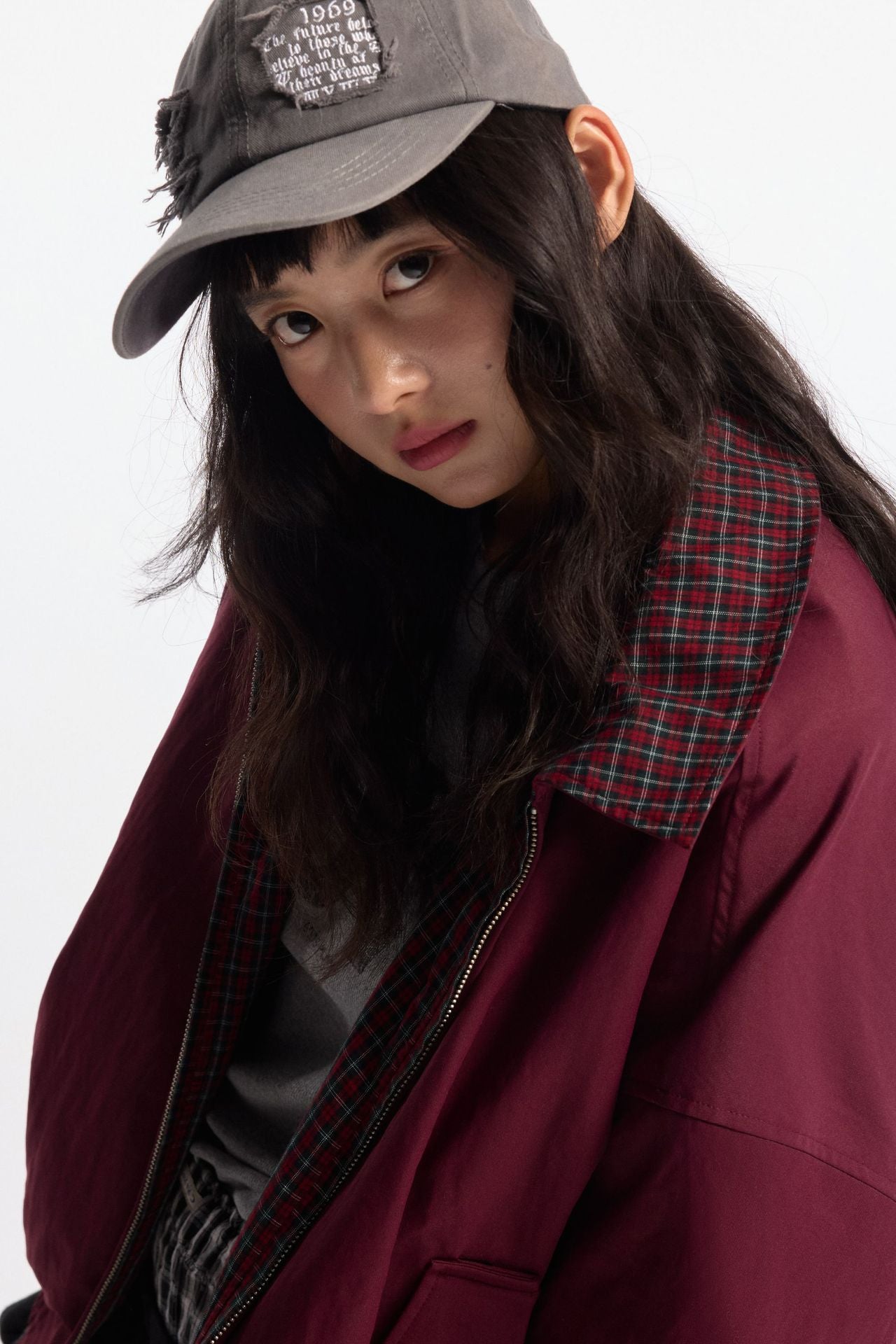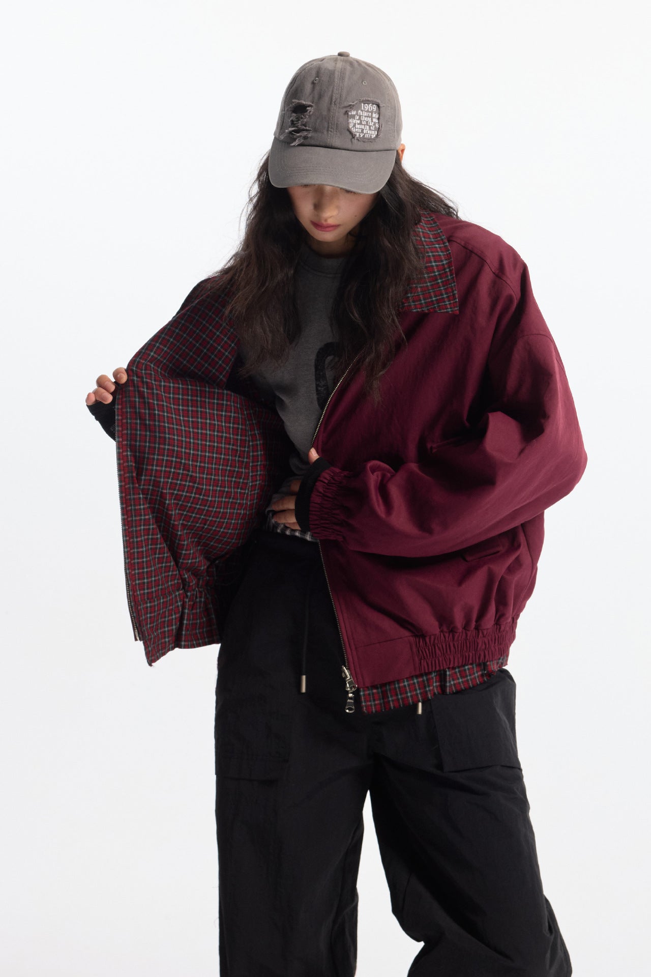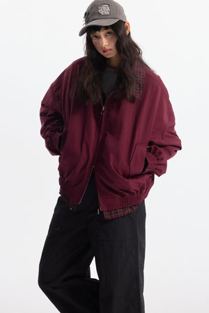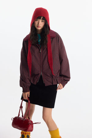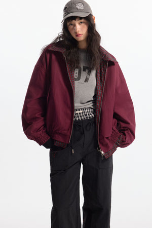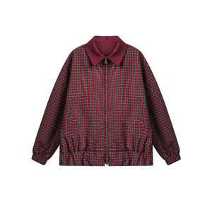 Zwoyren Retro Loose Reversible Lapel Plaid Jacket