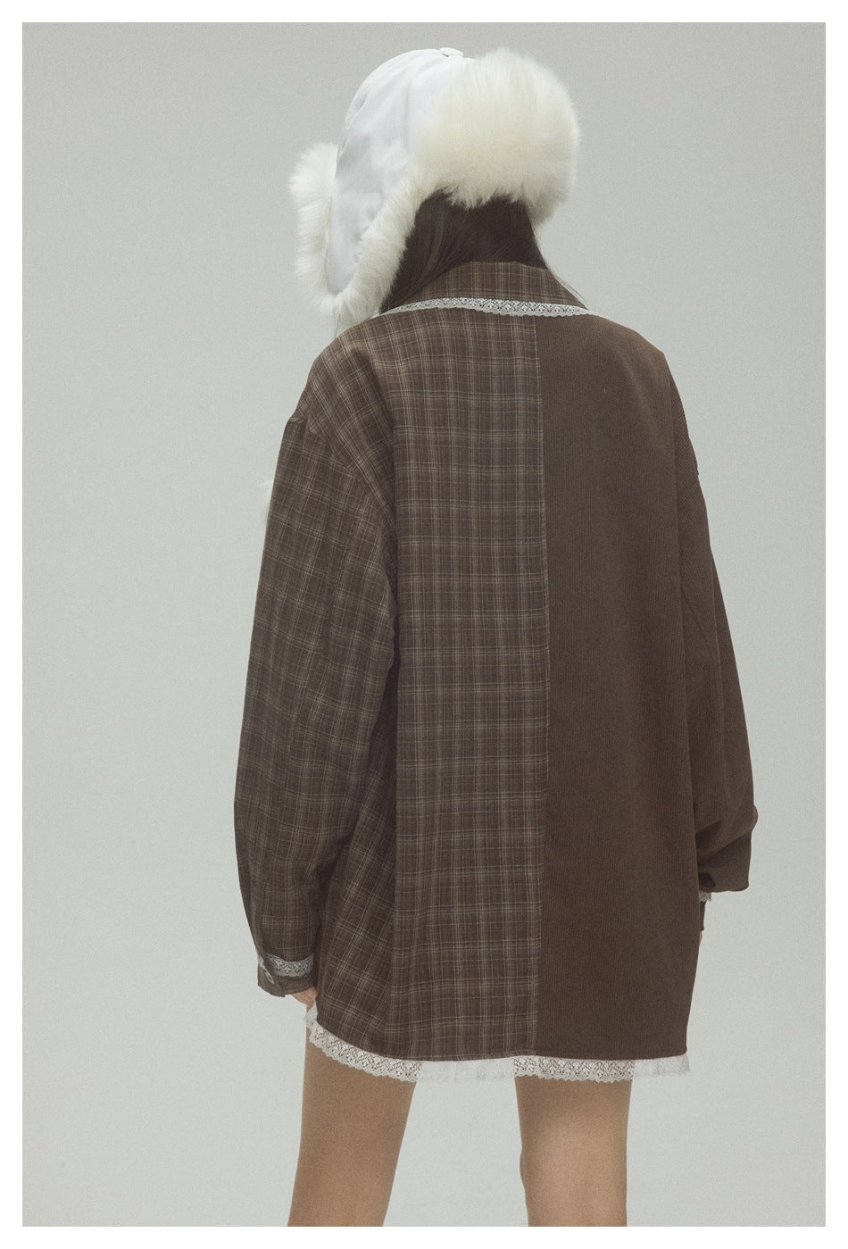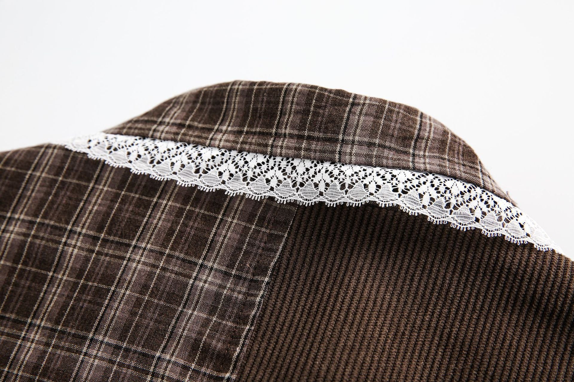 Zwoyren Plaid Lace Patchwork Jacket