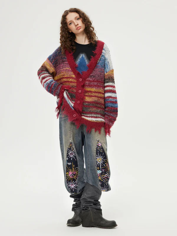 Zwoyren Fringe Gradient Pinstripe Cardigan