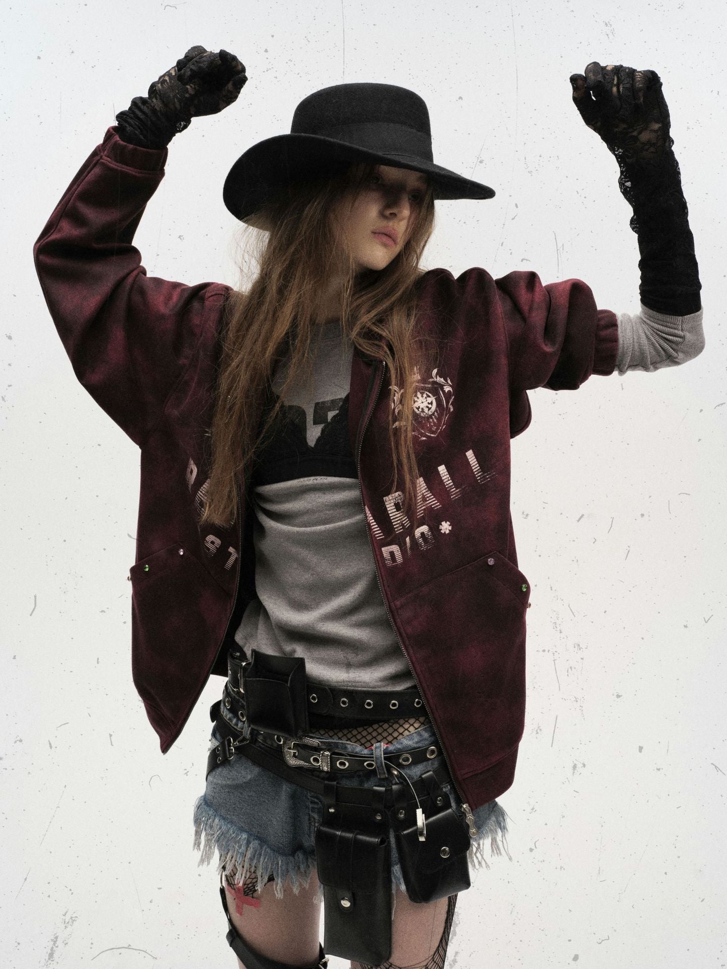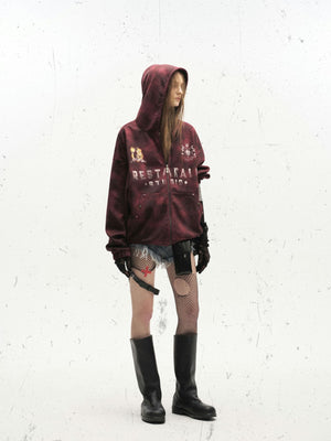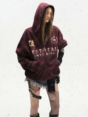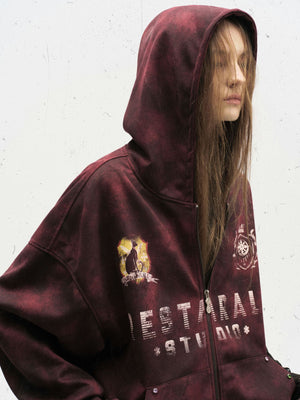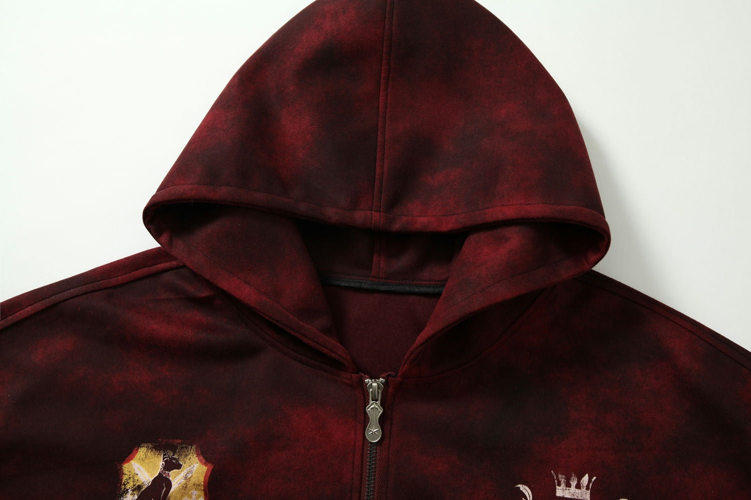 Zwoyren Gothic Crown Graphic Zip-Up Hooded Jacket