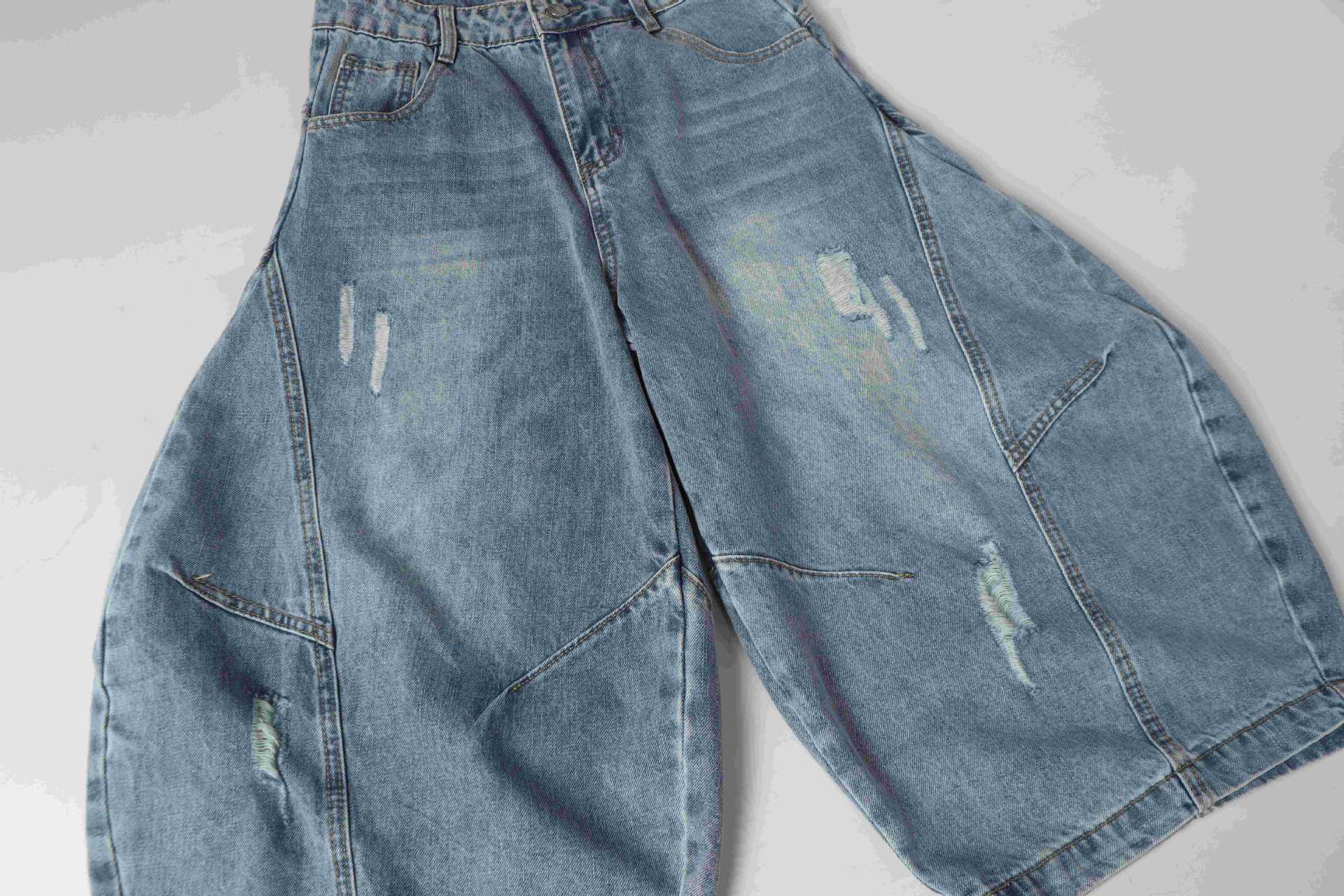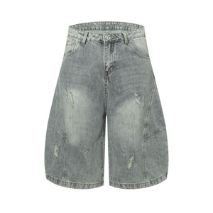 Zwoyren Washed Distressed Longline Barrel Jorts