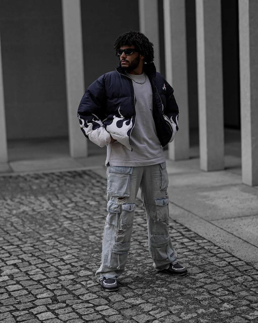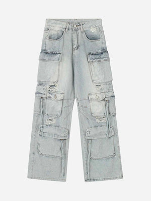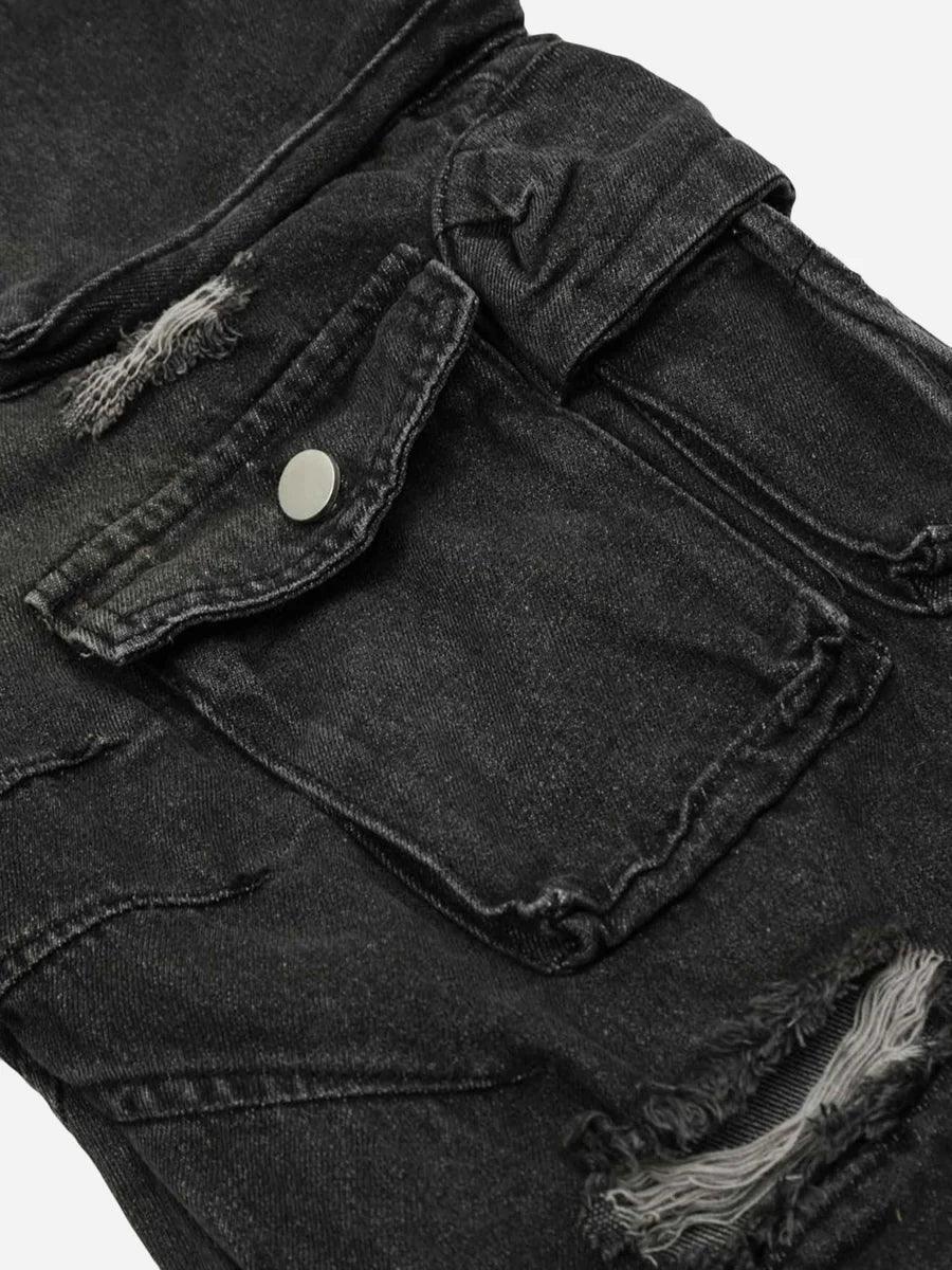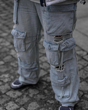 Washed Multi-Pocket Work Cargo Jeans