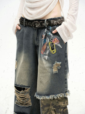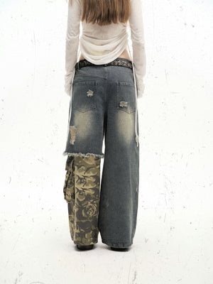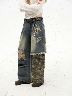 Zwoyren Contrast Camouflage Splicing Jeans