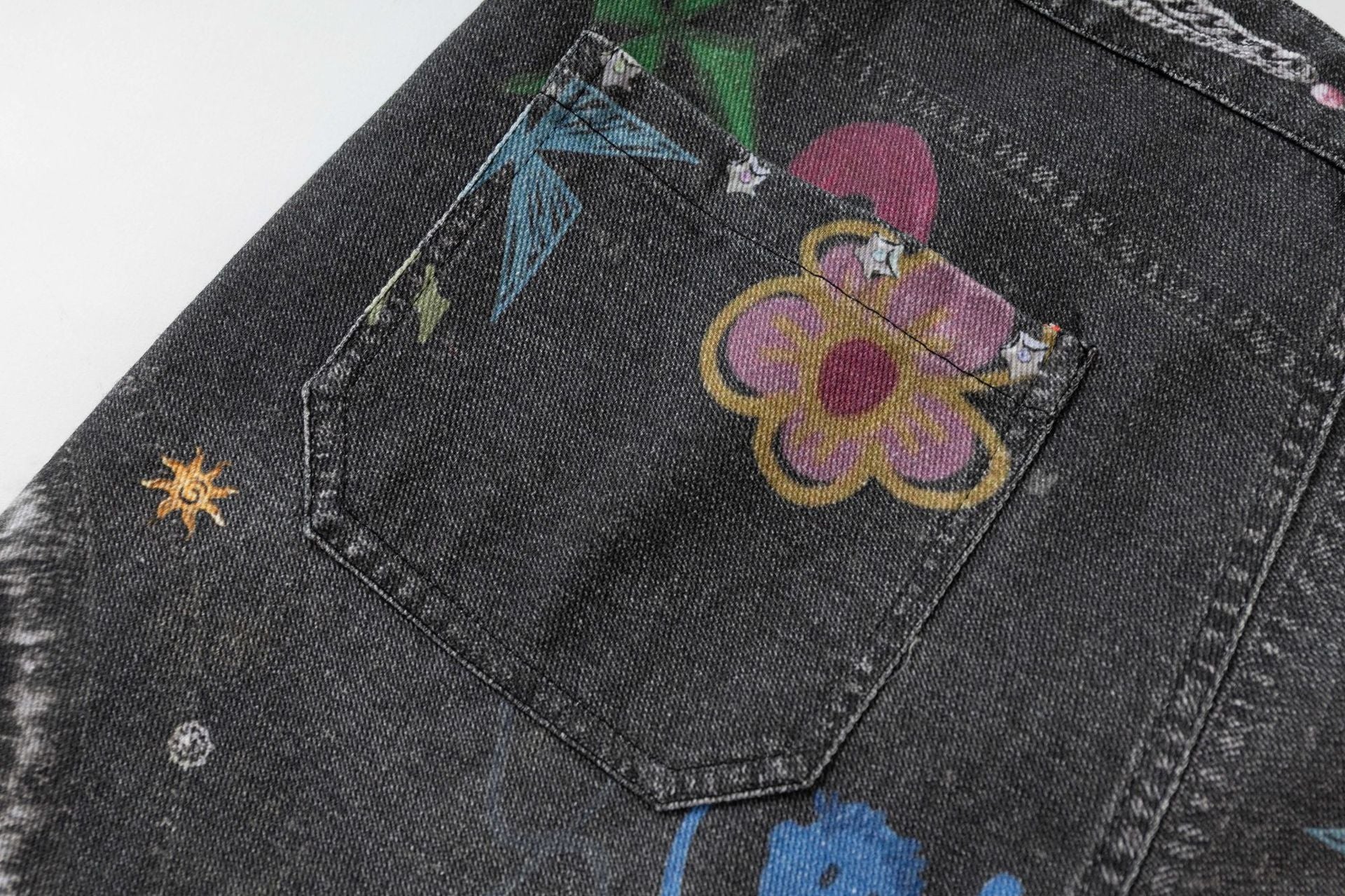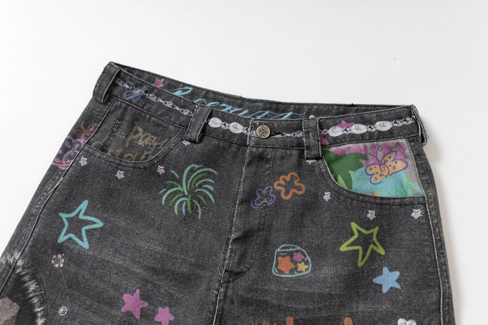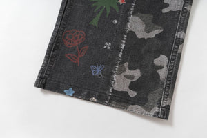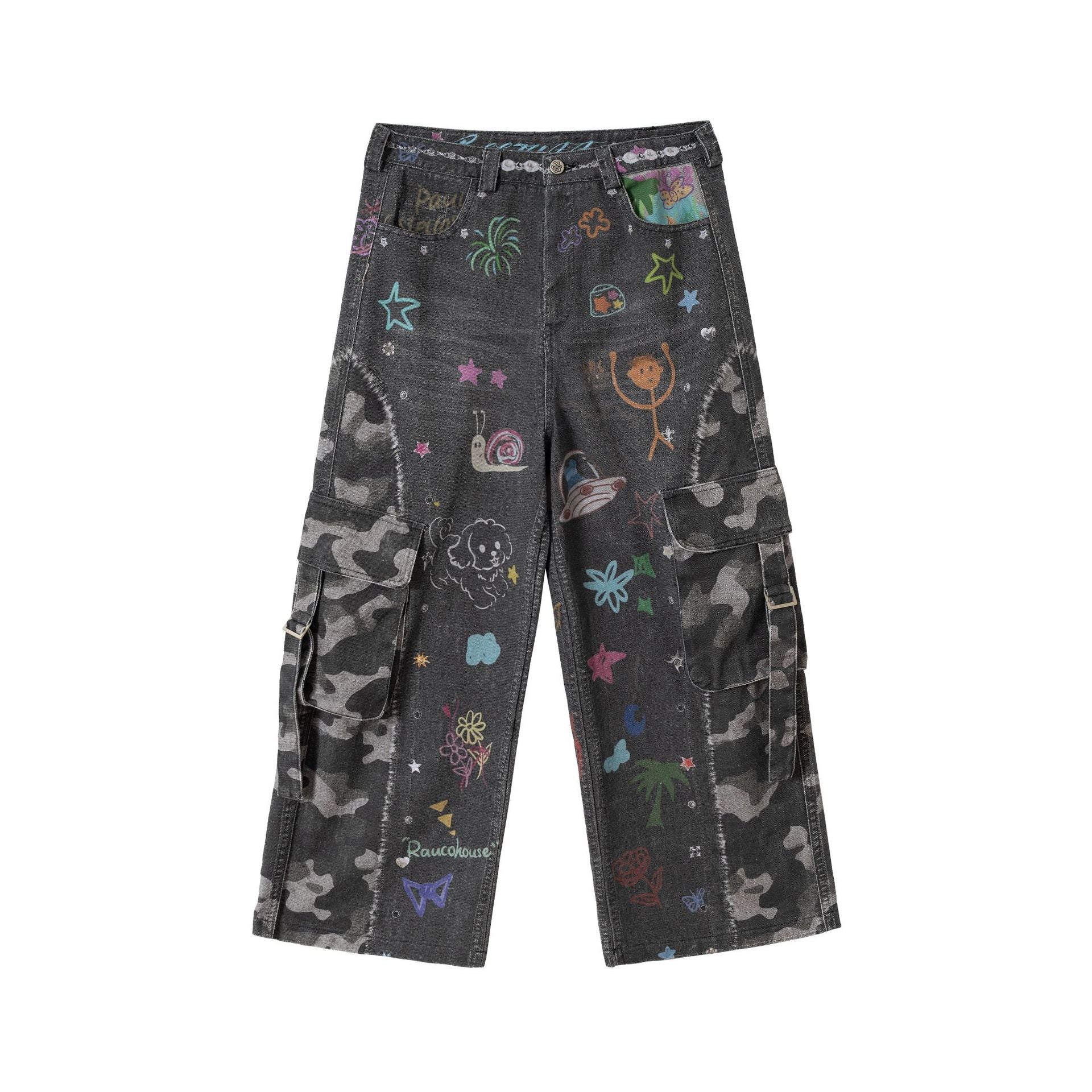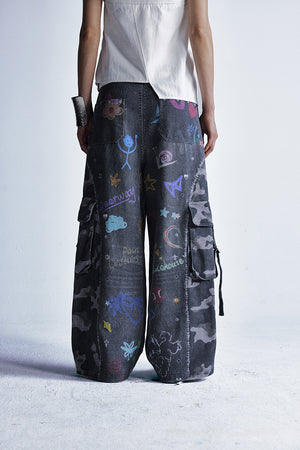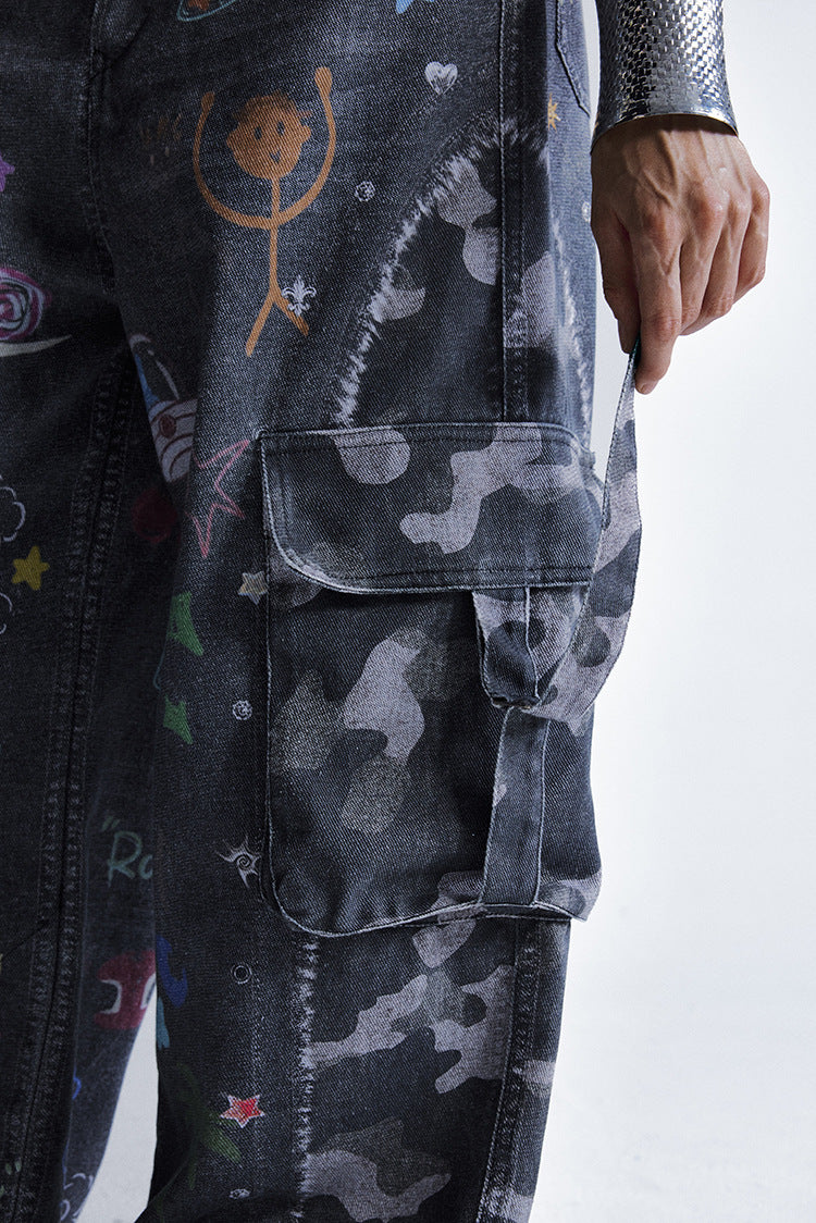 Zwoyren Graffiti Print Camouflage Layered Cargo Jeans