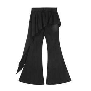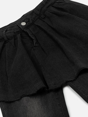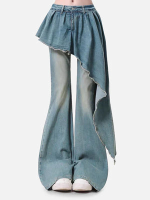 Designed with an irregular patchwork, these unique jeans combine classic denim with fluid draping for a high-fashion feel. The wide-leg silhouette and faded wash lend a vintage feel, while the uneven hem adds a bold edge.