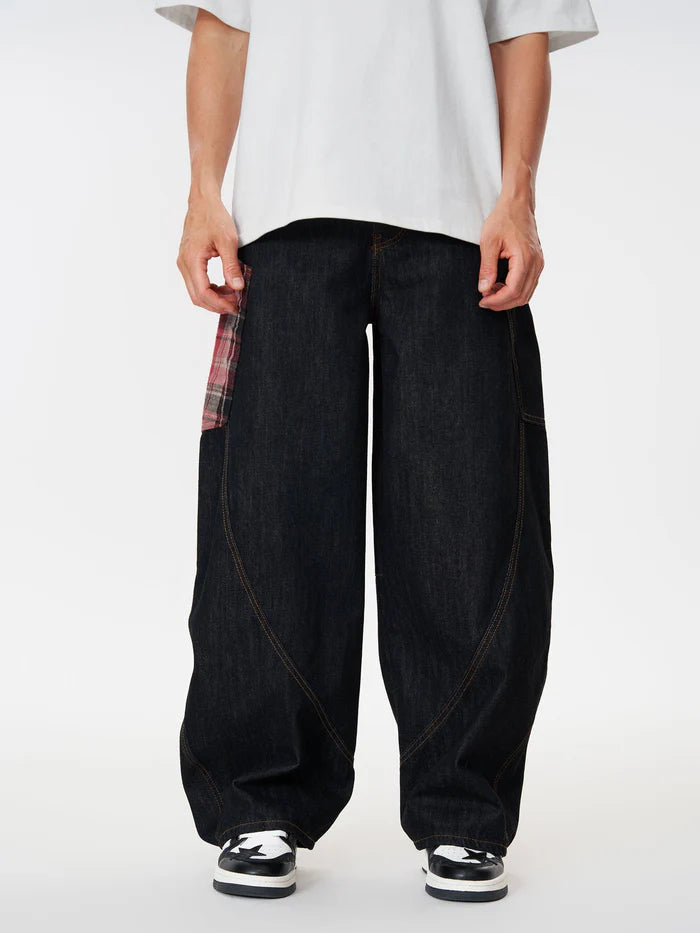 Zwoyren Super Baggy Jeans combine a relaxed barrel fit with stylish plaid pocket accents, creating a unique twist on classic denim. These jeans offer both comfort and a standout look, perfect for adding a casual edge to any outfit.