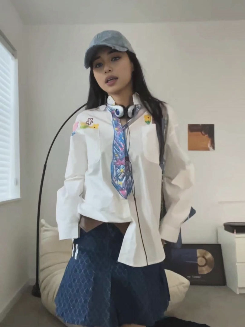Zwoyren Graffiti Necktie Long Sleeve Shirt