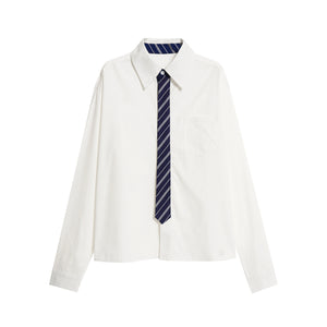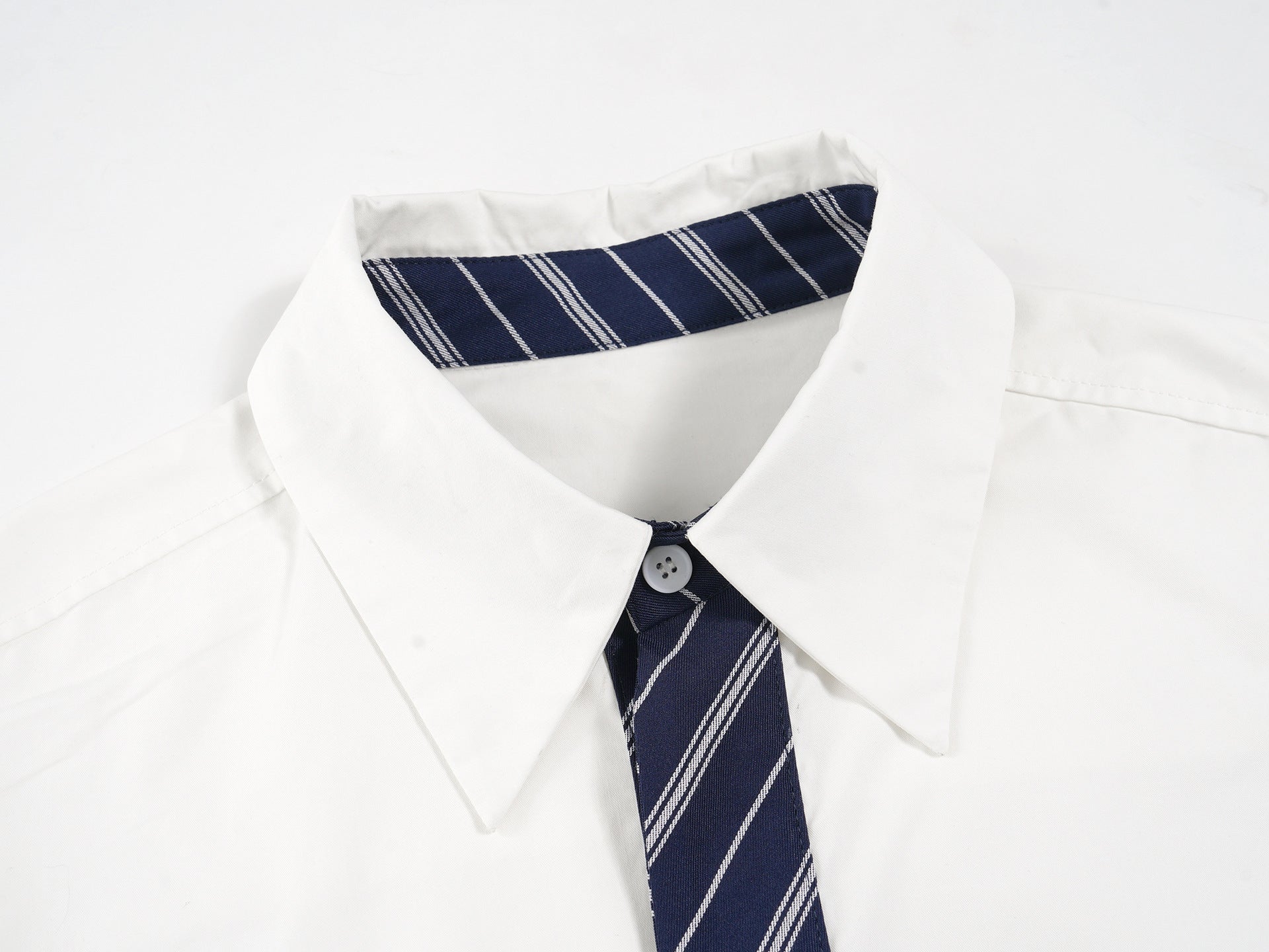 Zwoyren Stripe Necktie Long Sleeve Shirt