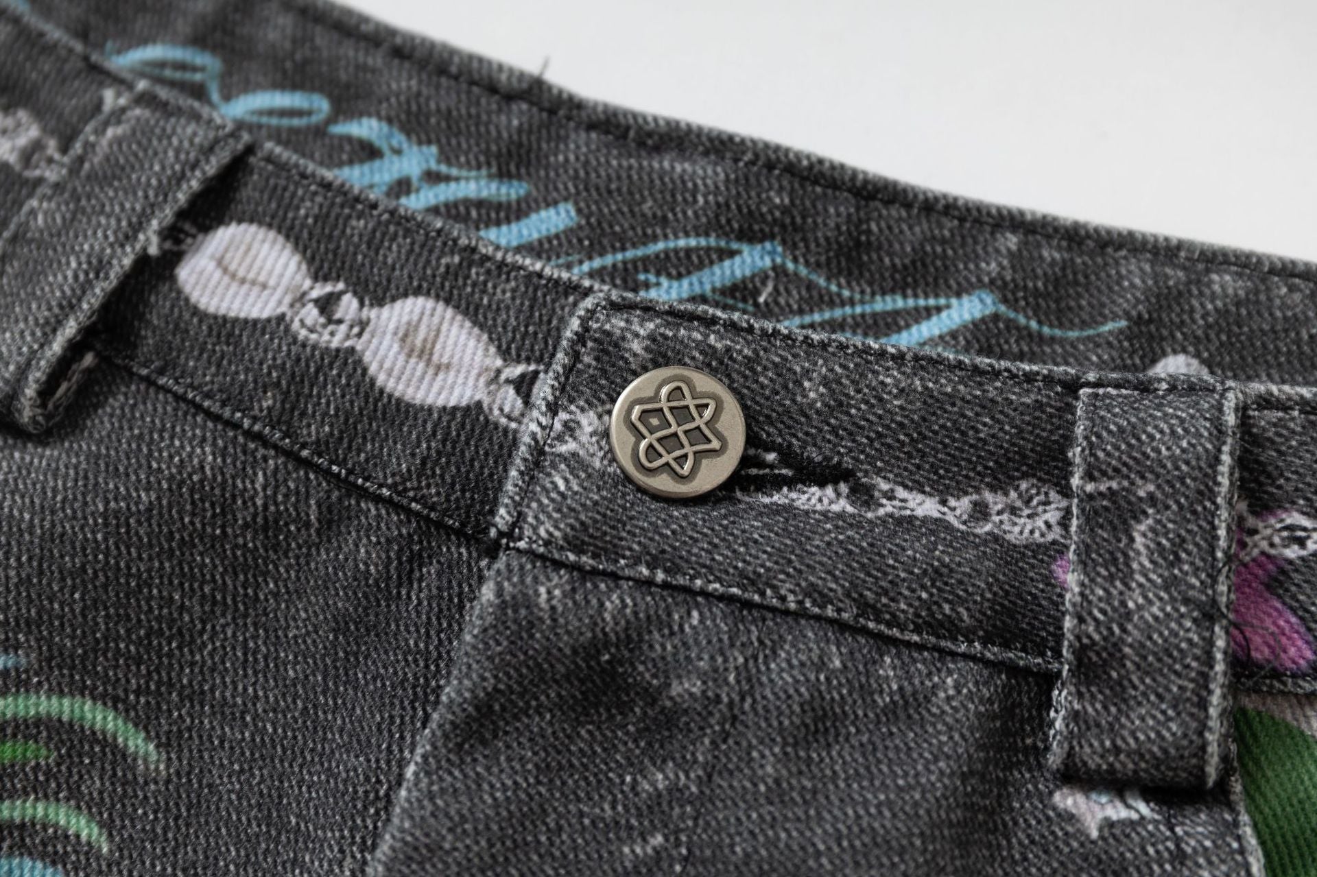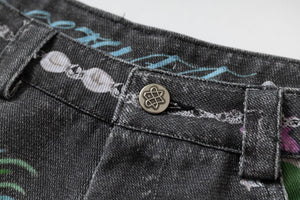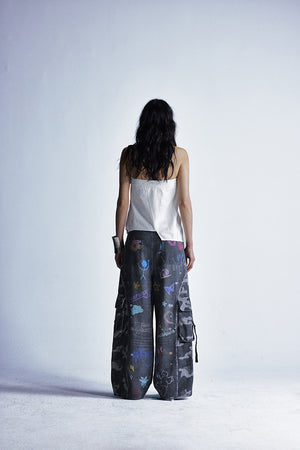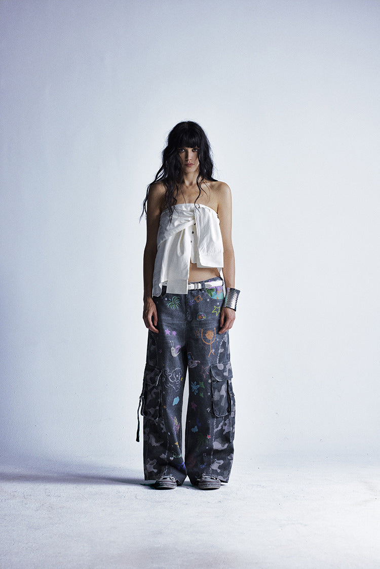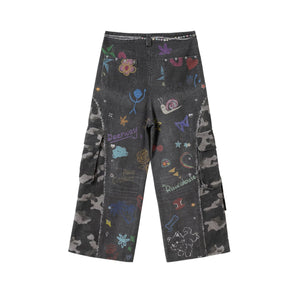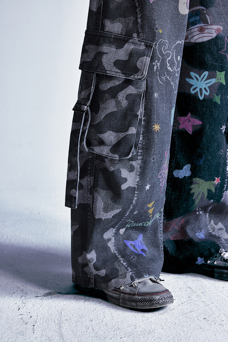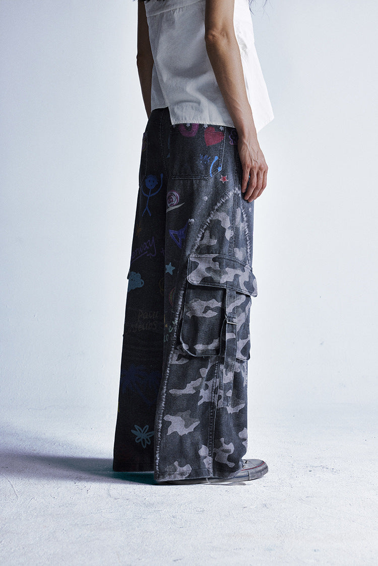 Zwoyren Graffiti Print Camouflage Layered Cargo Jeans