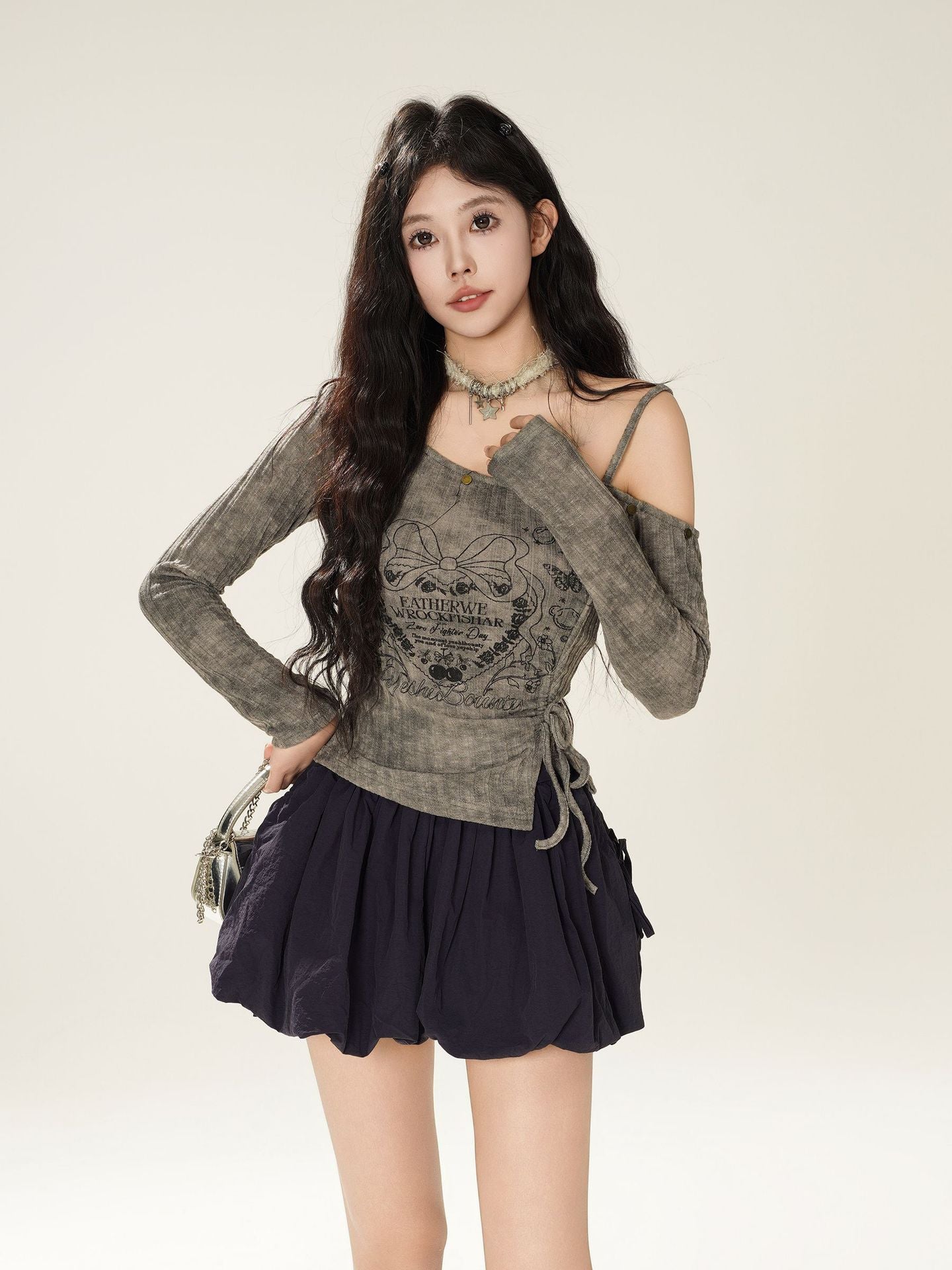 Zwoyren Long Sleeve Cold Shoulder Knit Top